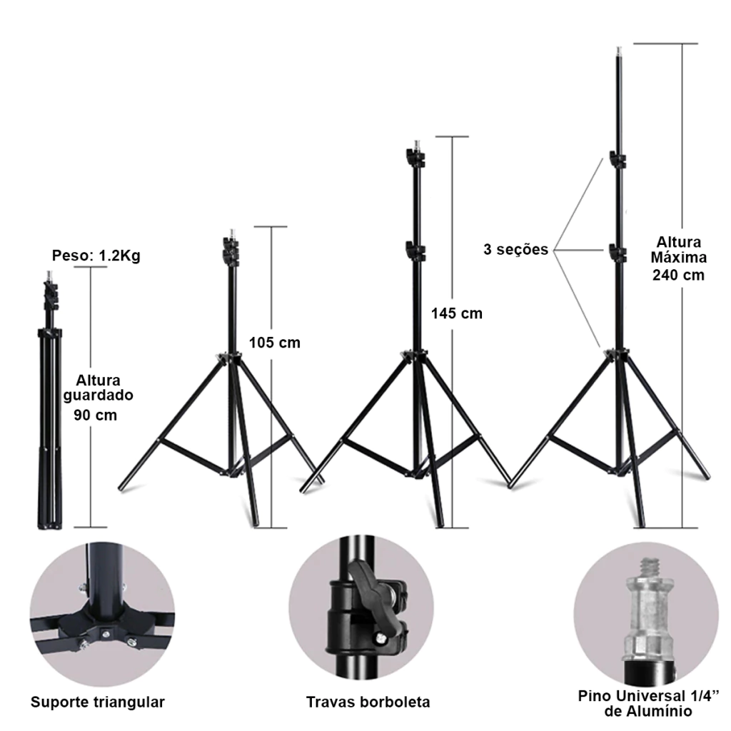 Também possui uma bolsa para facilitar no transporte e alocar em um lugar seguro quando desmontado.