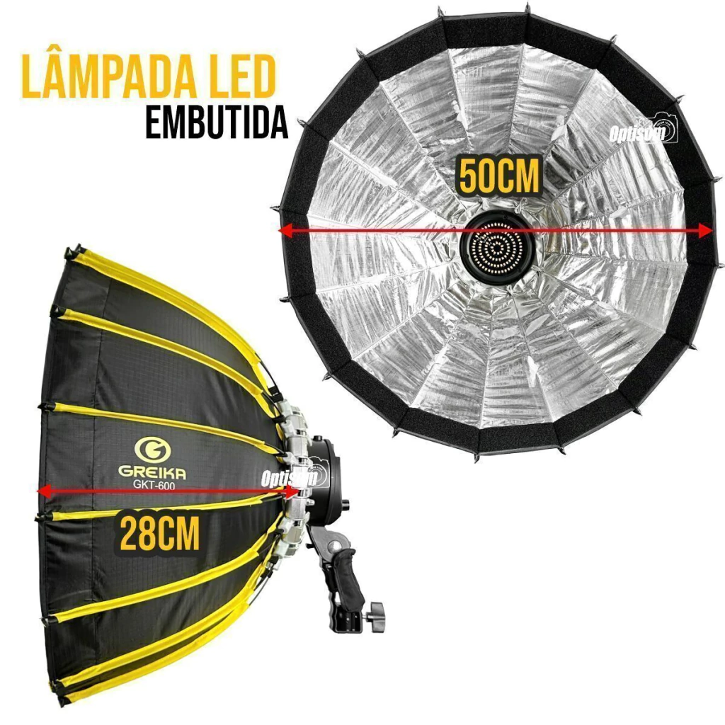 Luz contínua LED Softbox Parabólico Greika 50cm com Lâmpada Led 100W Bicolor embutida!