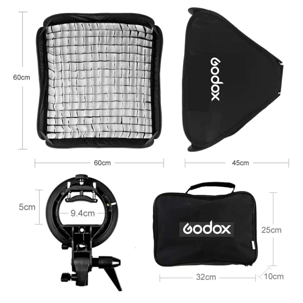Softbox Godox para flash dedicado 60 x 60cm com grid colmeia, compatível com o flash dedicado Canon, Nikon, Pentax, Sony, Youngnuo, godox, meike, etc.