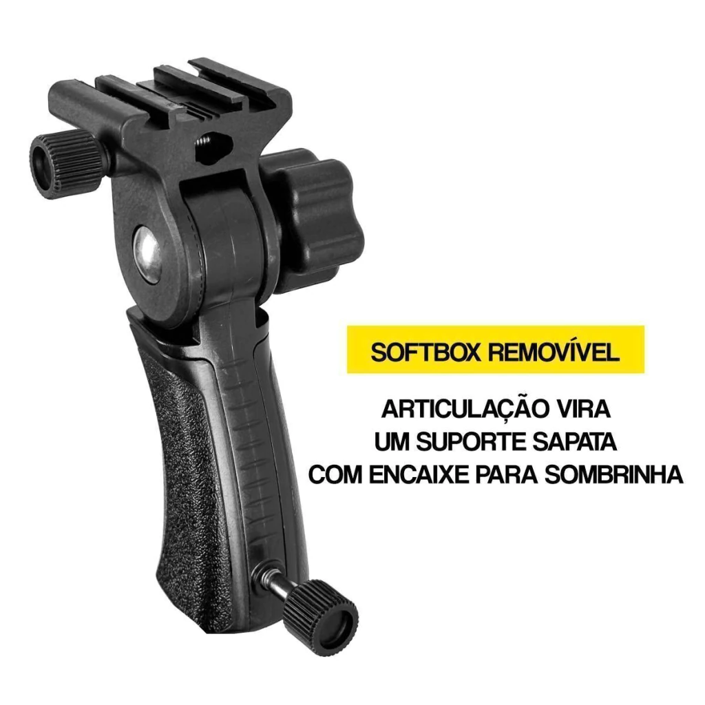Sistema dobrável permite agilidade na montagem do equipamento, cerca de 5 segundos você monta esse softbox;