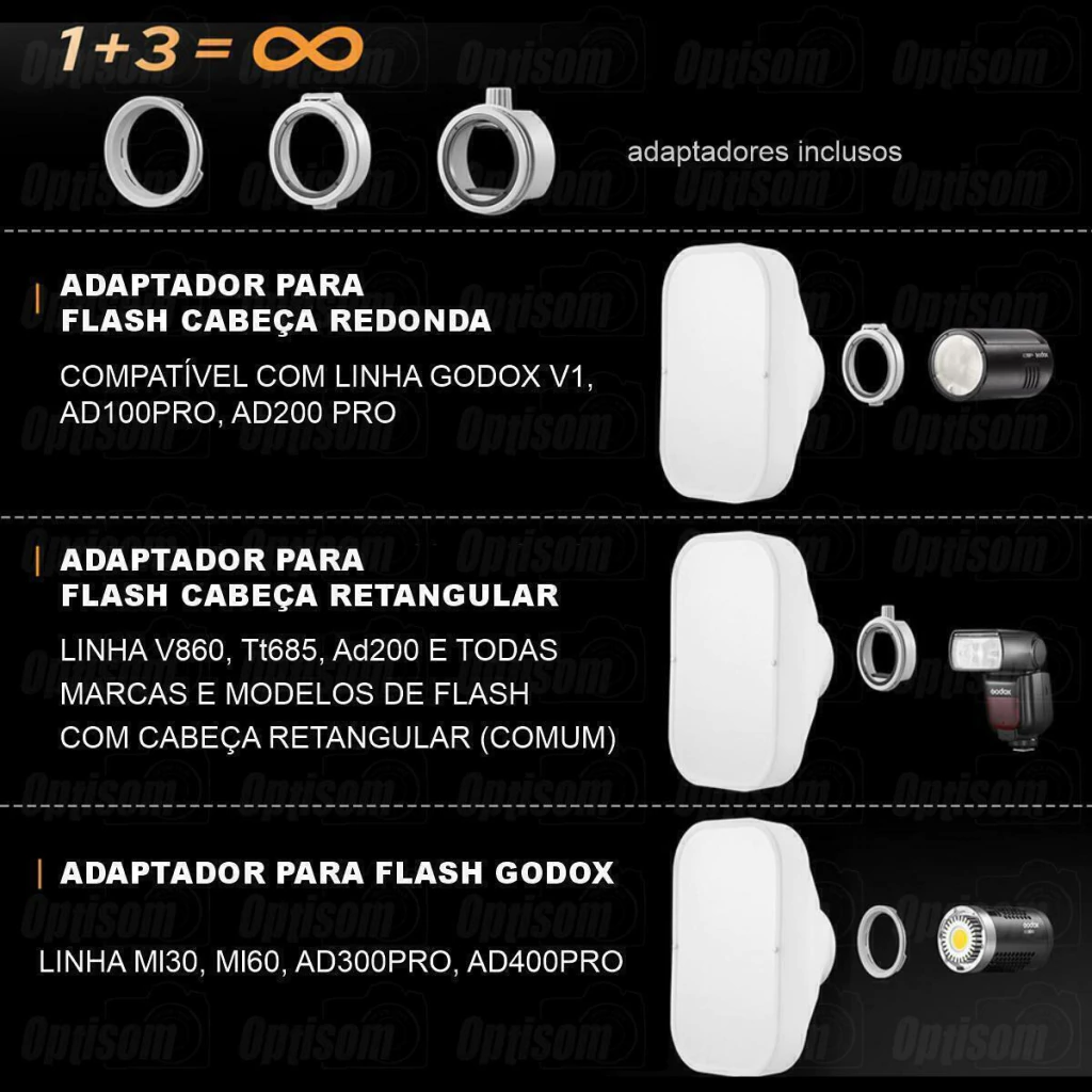 01 Adaptador para Flash Godox cabeça Redonda V1, AD200, AD100PRO.