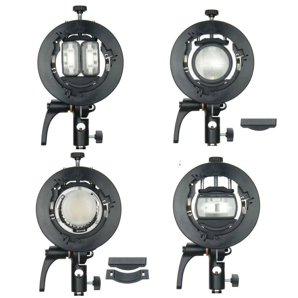 Incluso suporte Godox S2 Speedlite que permite o uso do