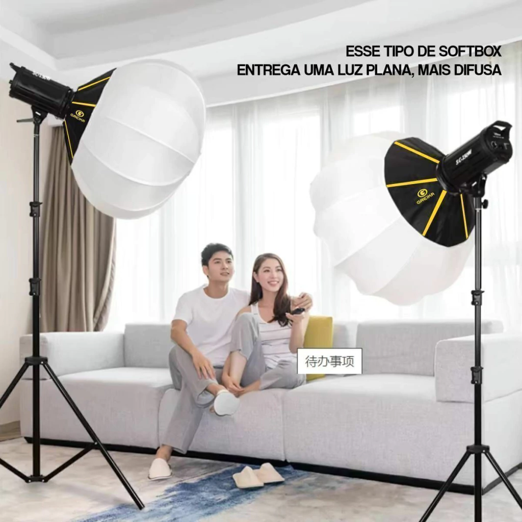 Softbox Lanterna GREIKA Balão Japonês Chinês com encaixe padrão Bowens para Tochas, Iluminadores, Flashes.
