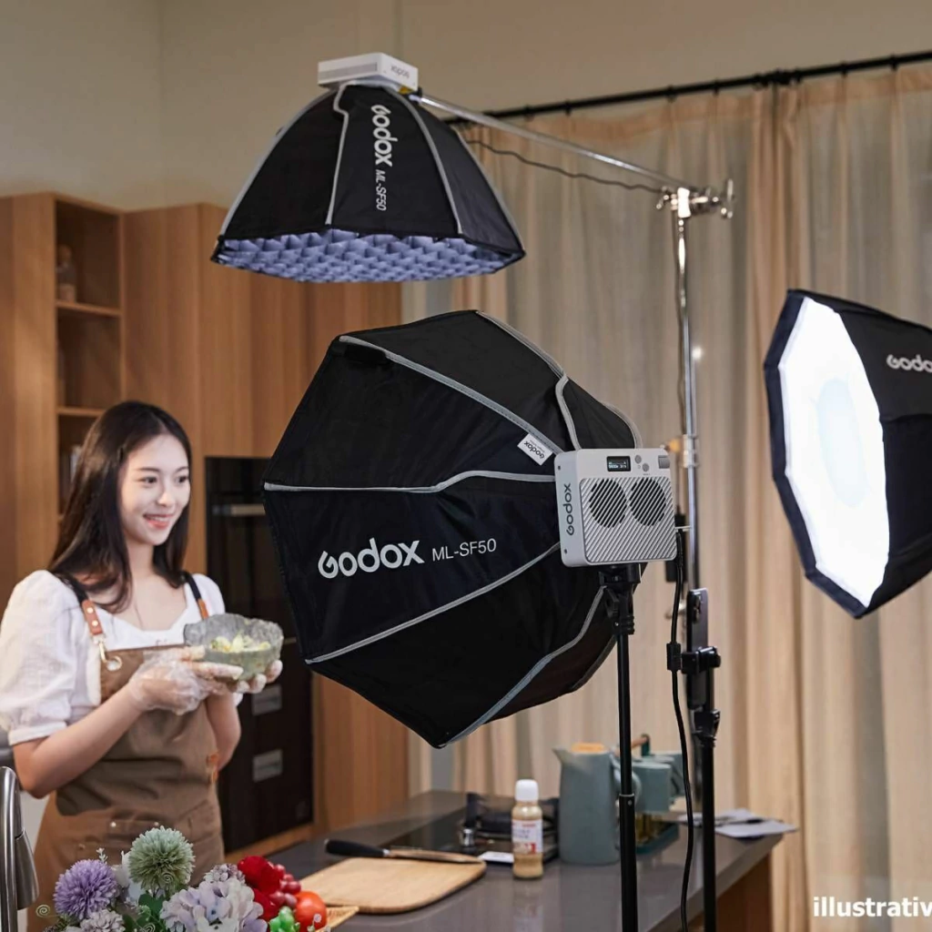 Kit Completo GODOX ML100Bi com Softbox OCTA GRID ML-SF50 e tripé 2,40m