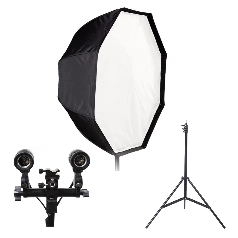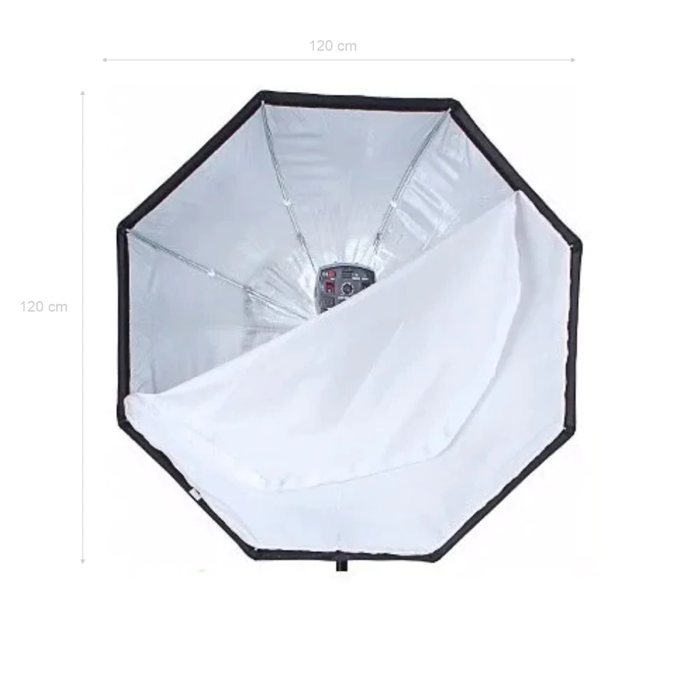 Kit Softbox 120cm para lampadas E27 e flash speedlite rebatedor e difusor, produto desmontável e portátil de fácil manuseio, o softbox fecha igual um guarda-chuva.