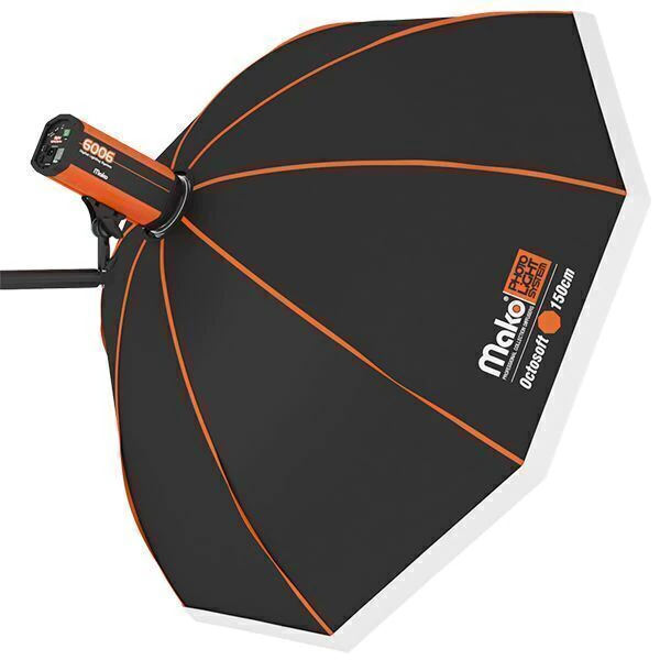 Softbox octogonal Mako Spot 150cm com tela branca translúcida para flashes e spots encaixe bowens.