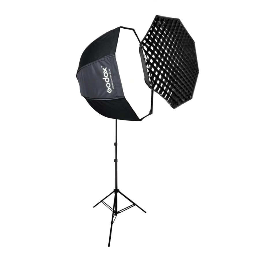 Kit Softbox octogonal 80 cm Godox com Grid para lampadas E27 (padrão), rebatedor e difusor, produto desmontavel e portatil de facil manuseio, o softbox fecha igual um guarda-chuva.