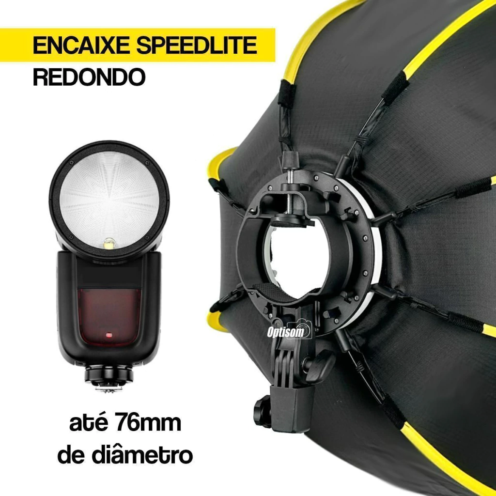 Sistema dobrável permite agilidade na montagem do equipamento, cerca de 5 segundos você monta esse softbox;