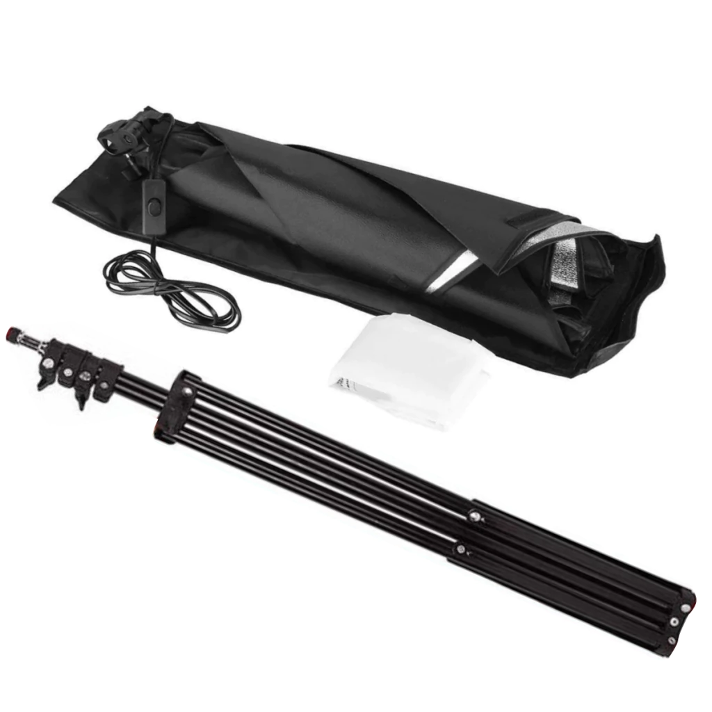 Softbox para lâmpada padrão E27 (MUITO COMUM) de 50 cm por 70 cm, retangular com tripé de 2 metros de altura máxima.
