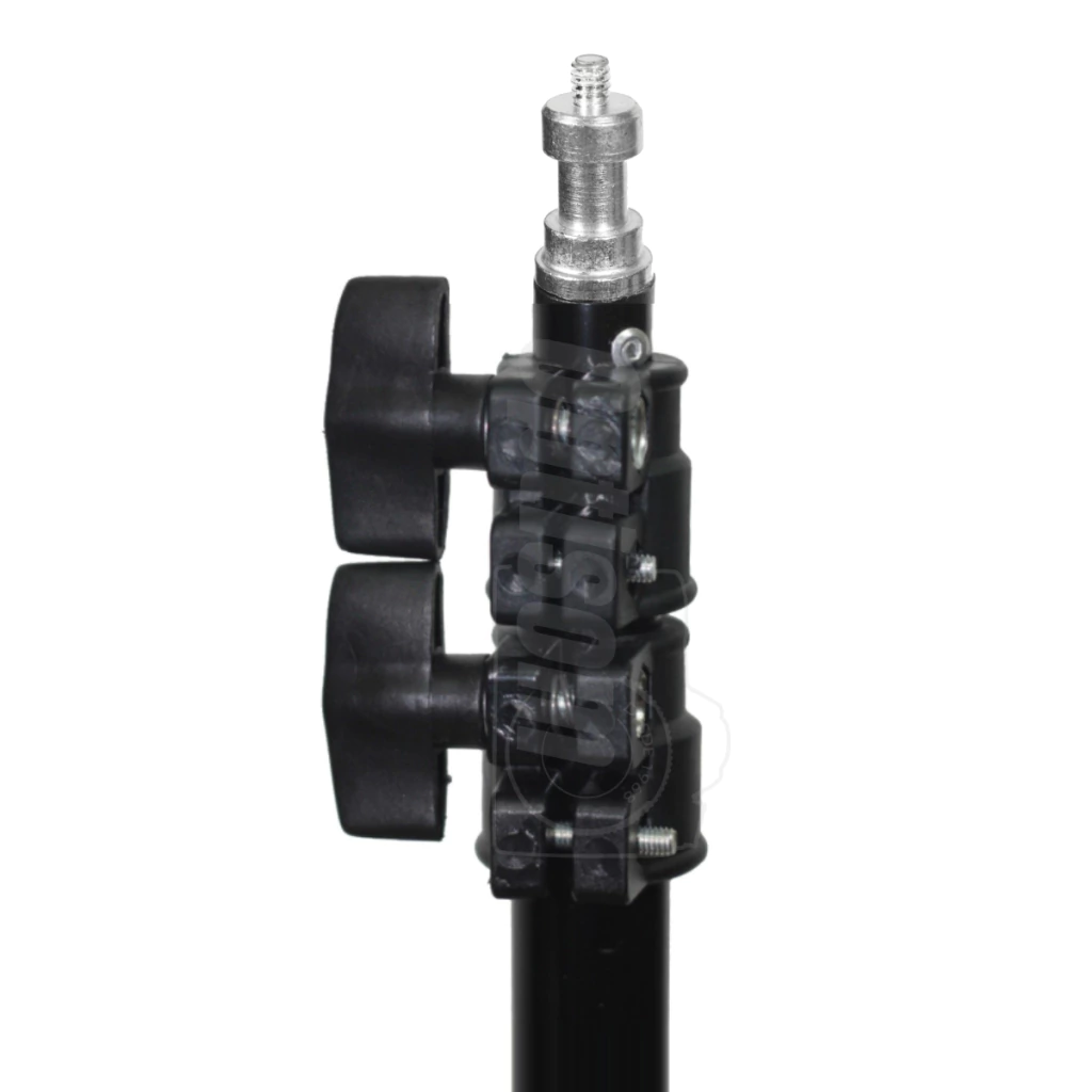 Ele pode ser encaixado em pinos de tripés de iluminação.