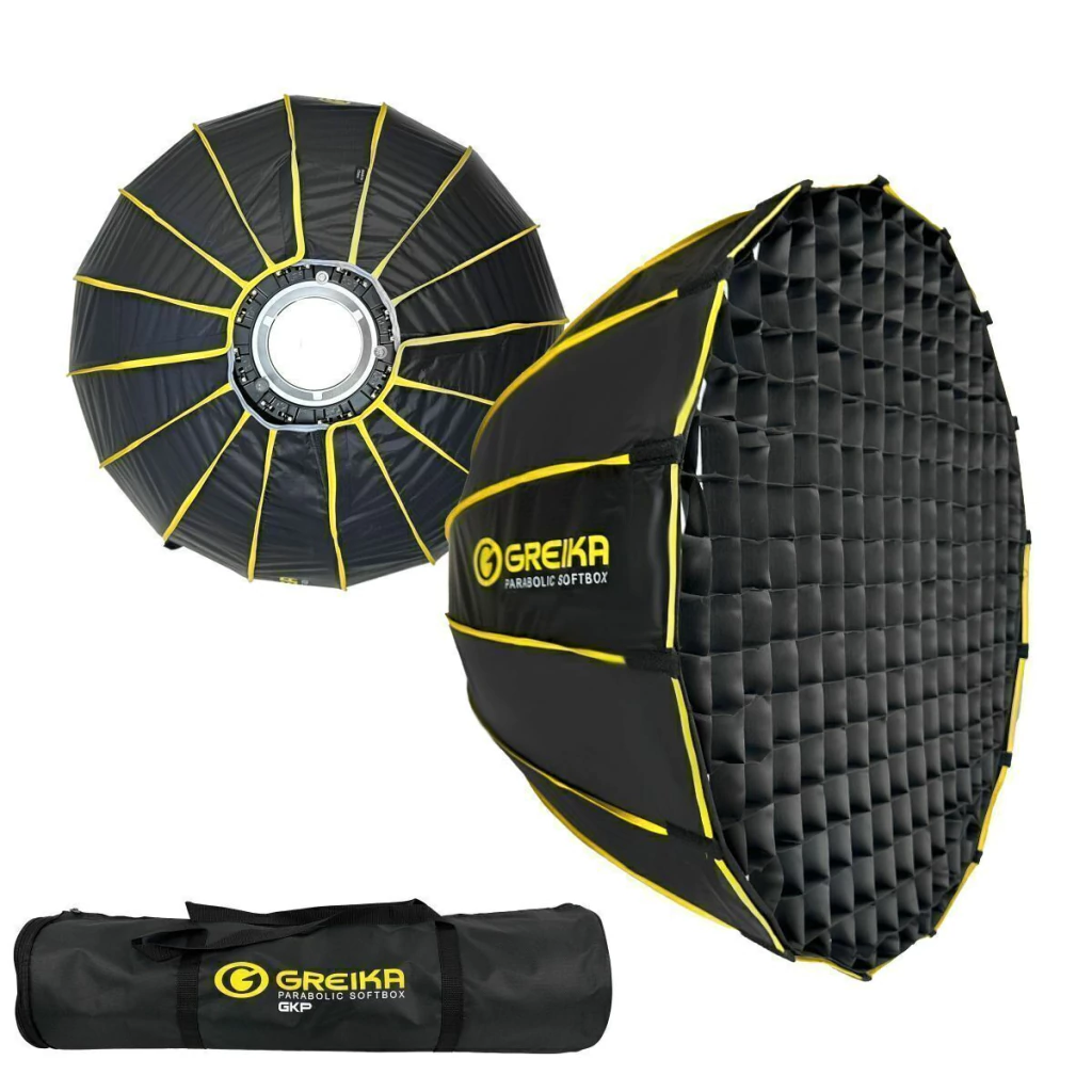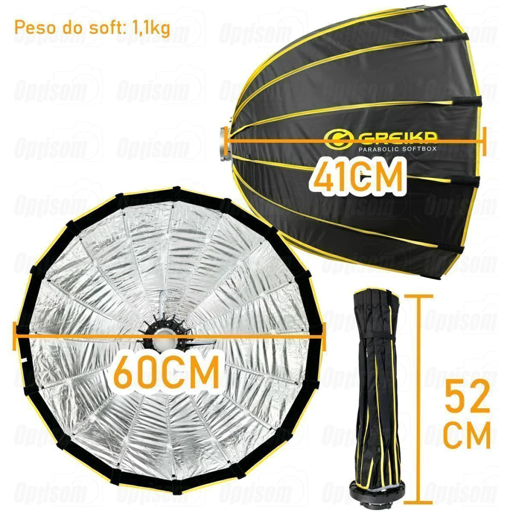 Softbox Parabólico Greika 60CM com encaixe BOWENS e montagem RÁPIDA com colmeia GRID para Flash Estúdio e Luz contínua de estúdio.