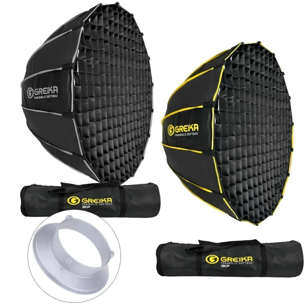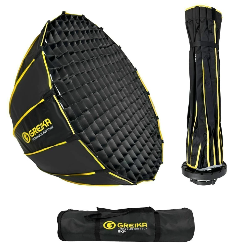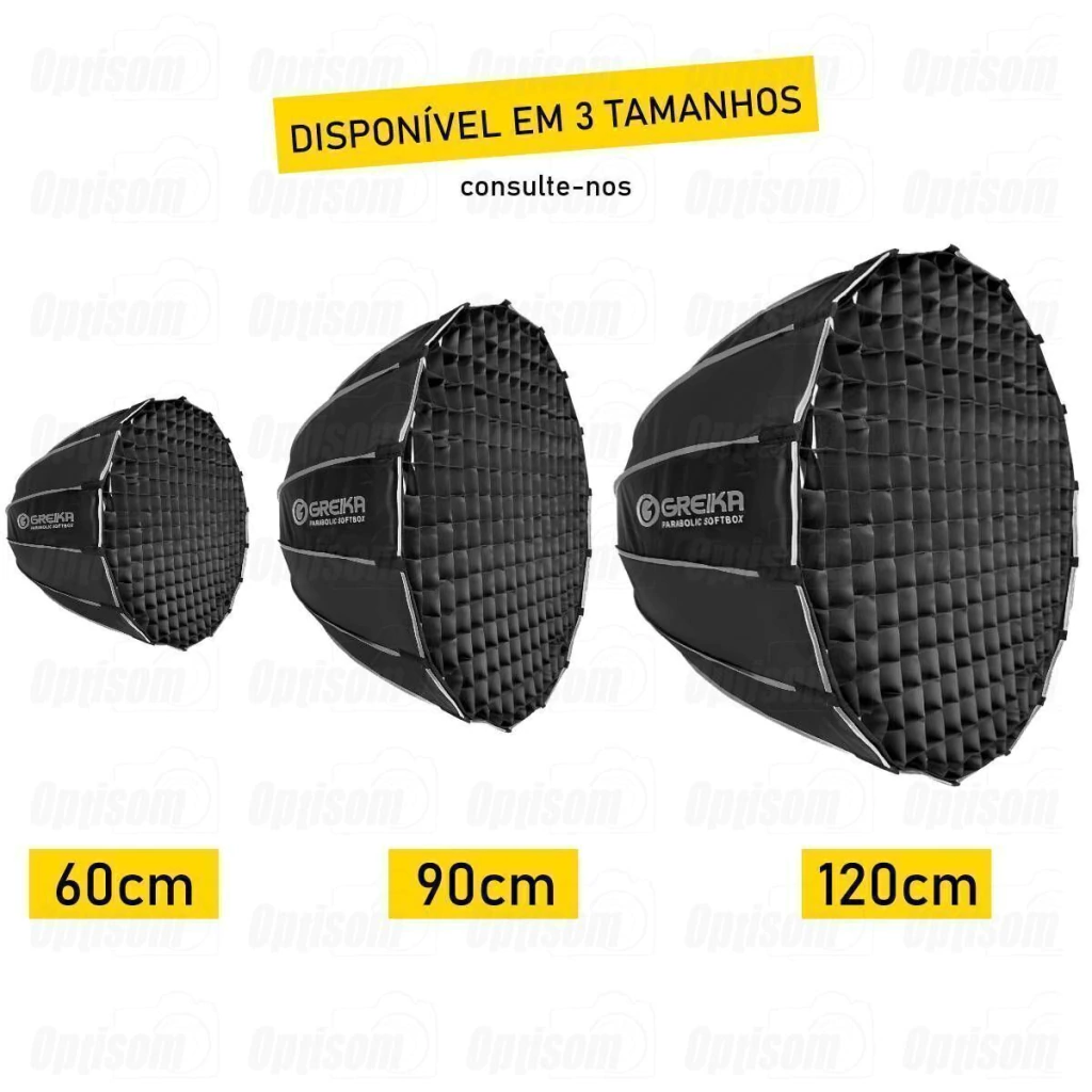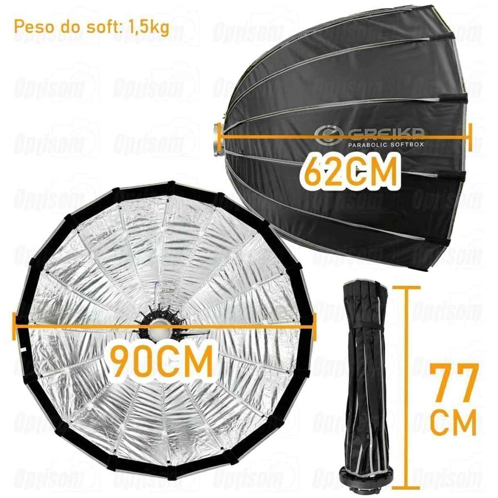 Softbox Parabólico Greika 90CM com encaixe BOWENS e montagem RÁPIDA com colmeia GRID para Flash Estúdio e Luz contínua de estúdio.
