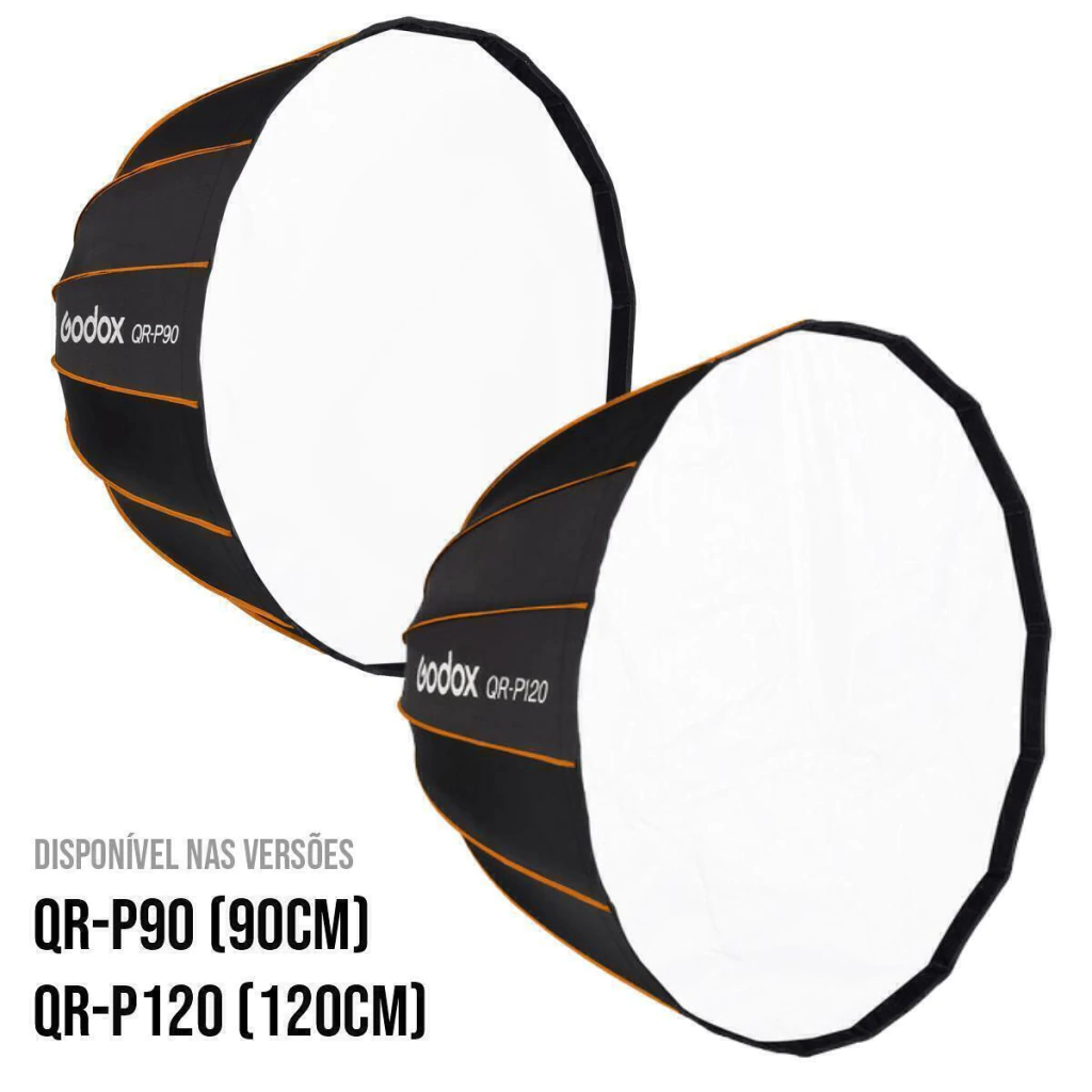 Softbox Parabólico Godox QR-P120 120cm com encaixe BOWENS e montagem ENGATE RÁPIDO (quick release), muito prático!
