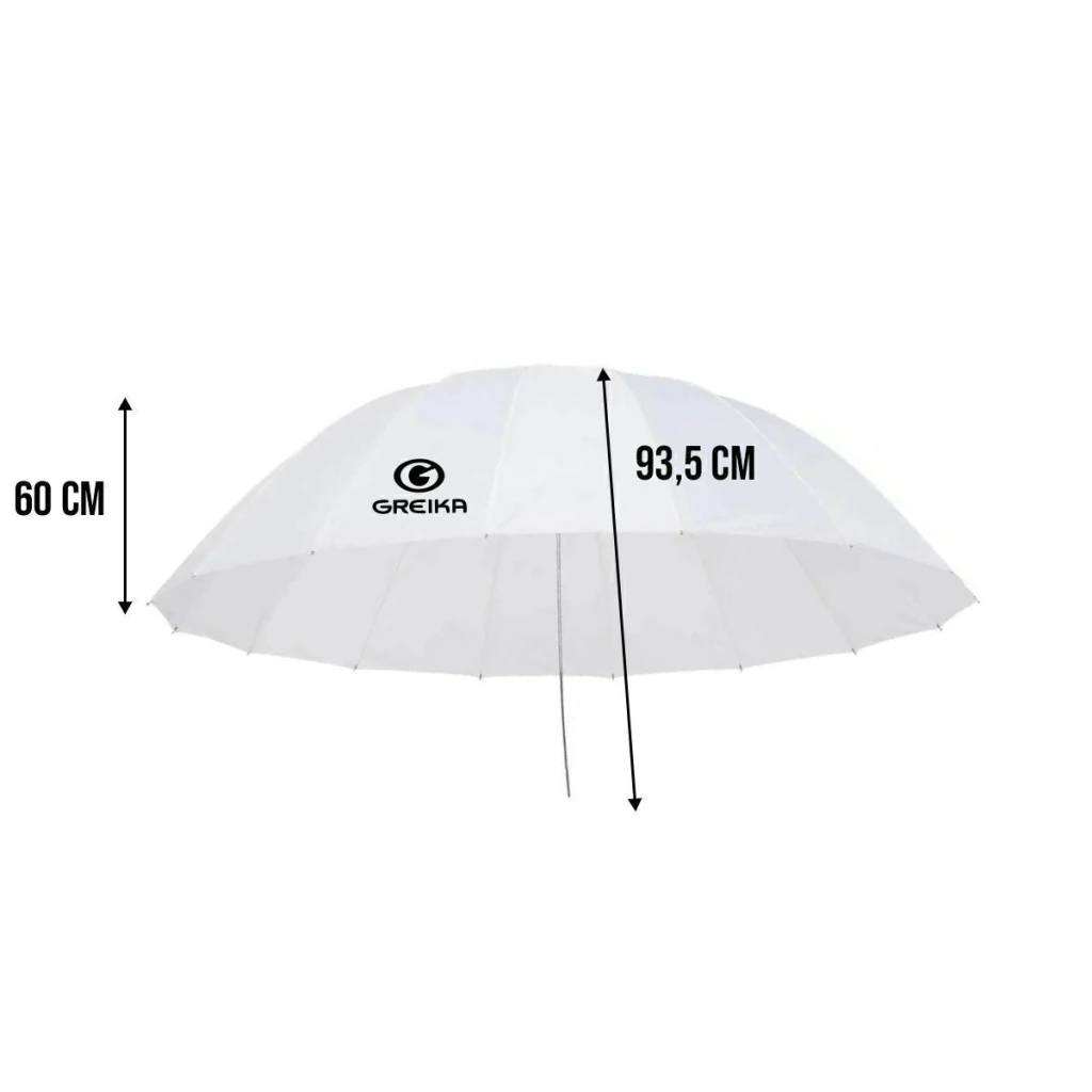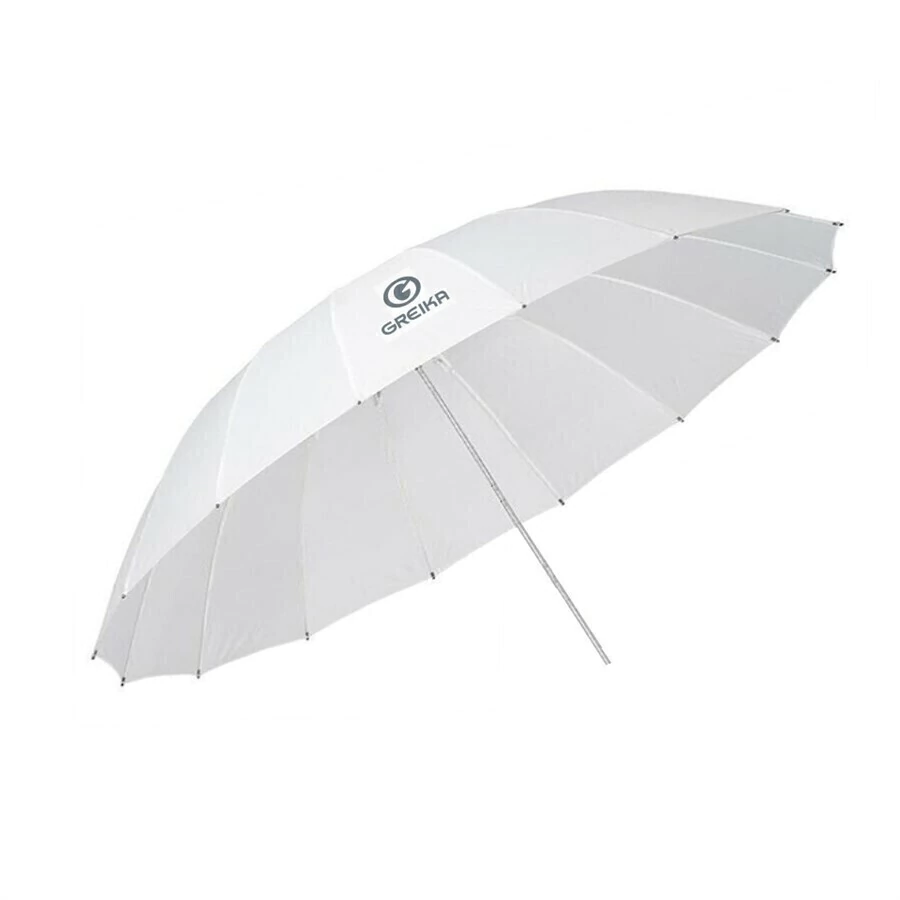 A Sombrinha Difusora W1675 Greika 180 cm cor branca é feita em nylon e estrutura em metal cromado é ideal para seu estúdio fotográfico.