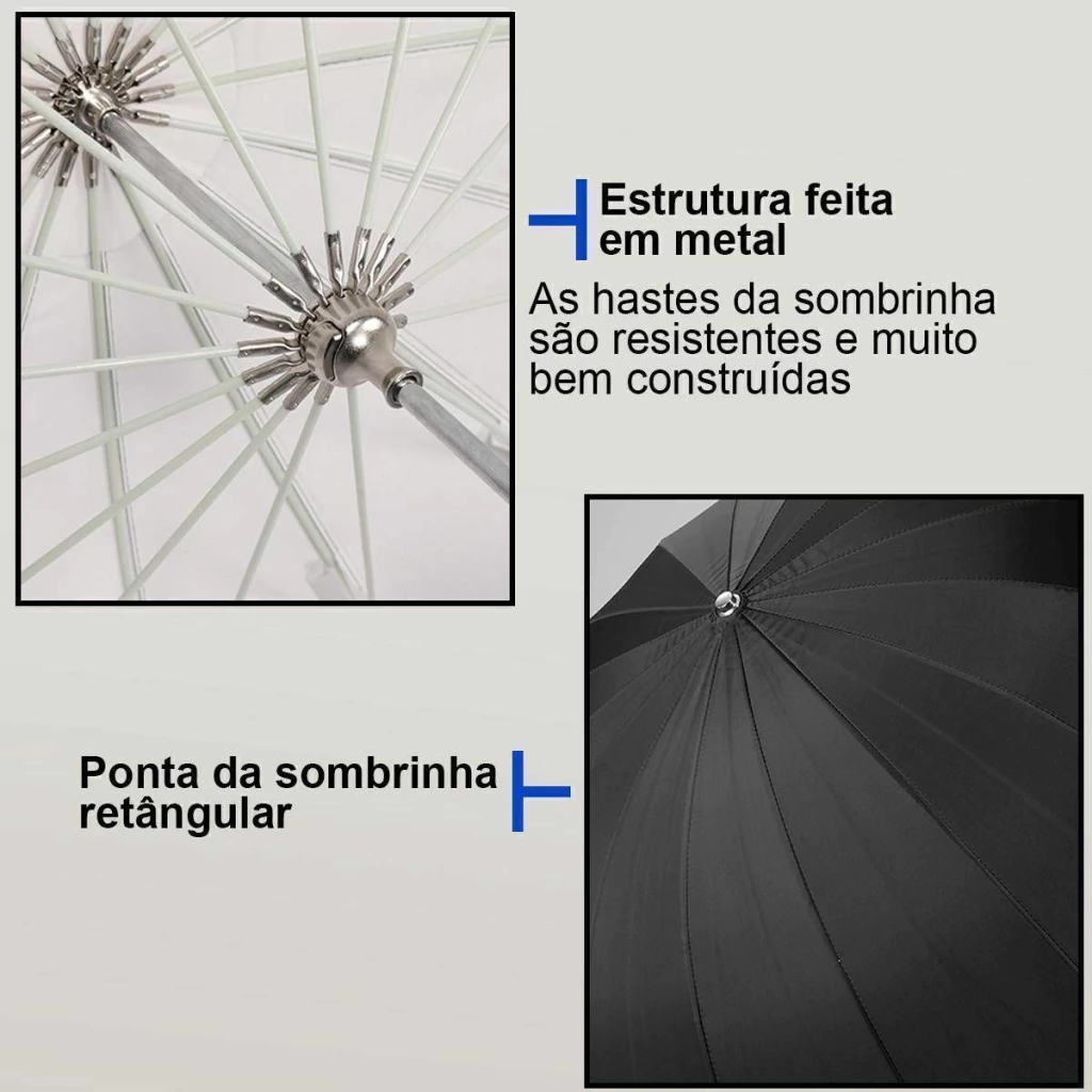 A sombrinha PRETA/BRANCA você tem uma luz mais ampla, mais difusa que rebatedores PRETO/PRATA, deixa passar menos luz que sombrinhas só BRANCA e menos saturada que as sombrinhas PRETO/DOURADO.