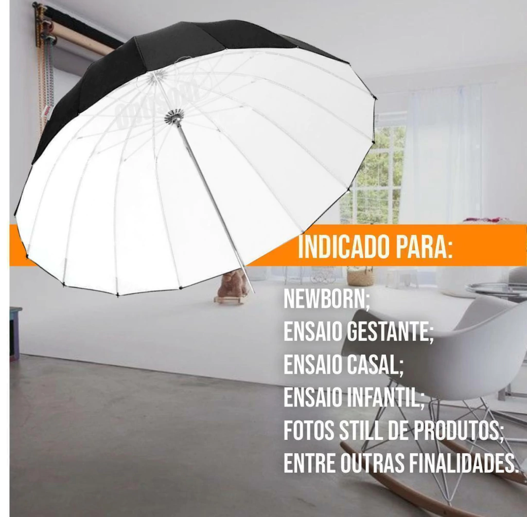 Com o uso desta sombrinha PRETO/BRANCO você tem uma luz mais ampla, mais difusa