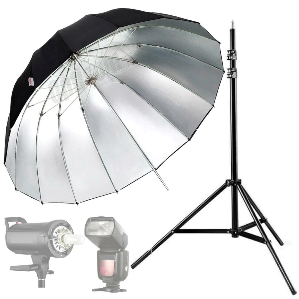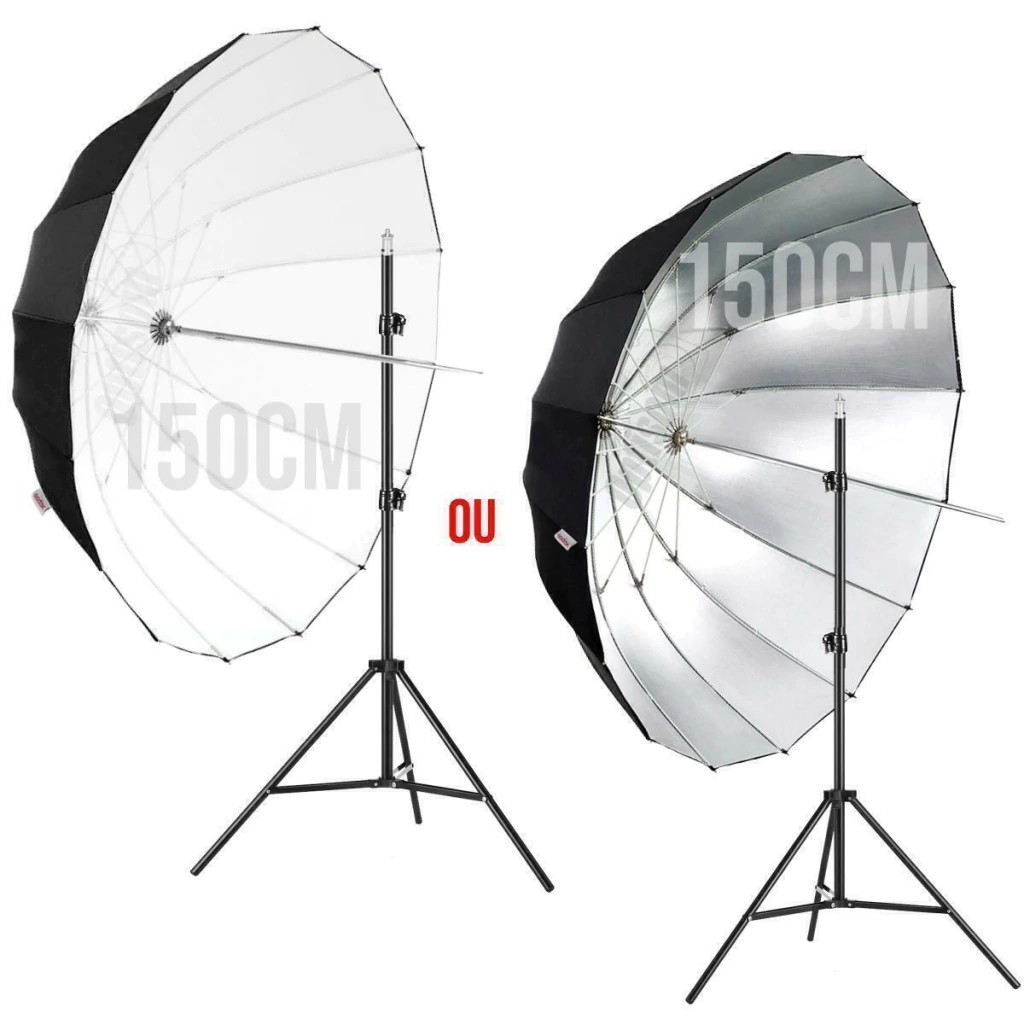 Com o uso desta sombrinha PRETA PRATA você tem uma luz mais ampla, rebatida, deixando