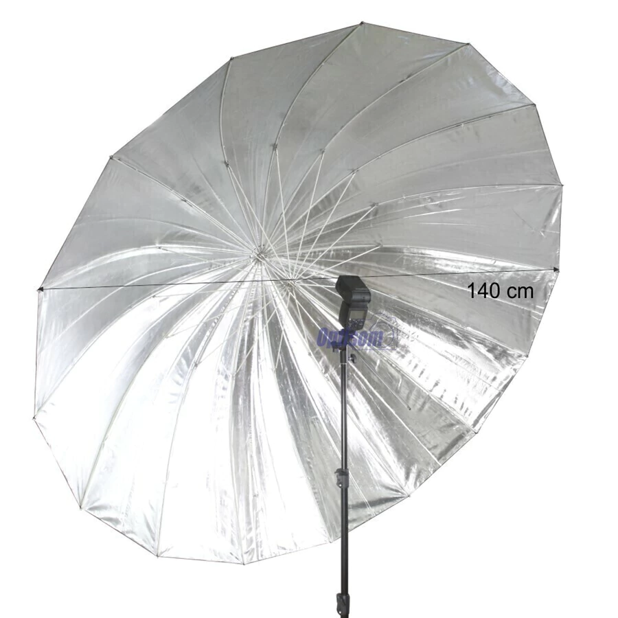 Sombrinha Refletora Preto/Prata YU302-140 Greika 140 cm é feita em nylon e estrutura em metal cromado é ideal para seu estúdio fotográfico.