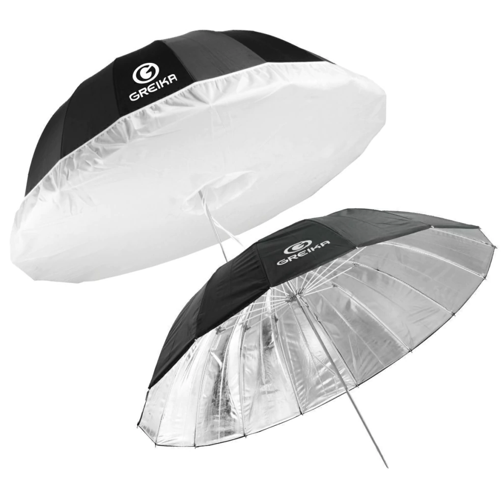 Softbox tipo sombrinha white bounce com face interna prateada, aumenta os reflexos especulares e produz uma imagem de alto contraste (luz dura) e um efeito suave e envolvente. É perfeita para vídeo, fotos de produtos, e P&B fotografia.