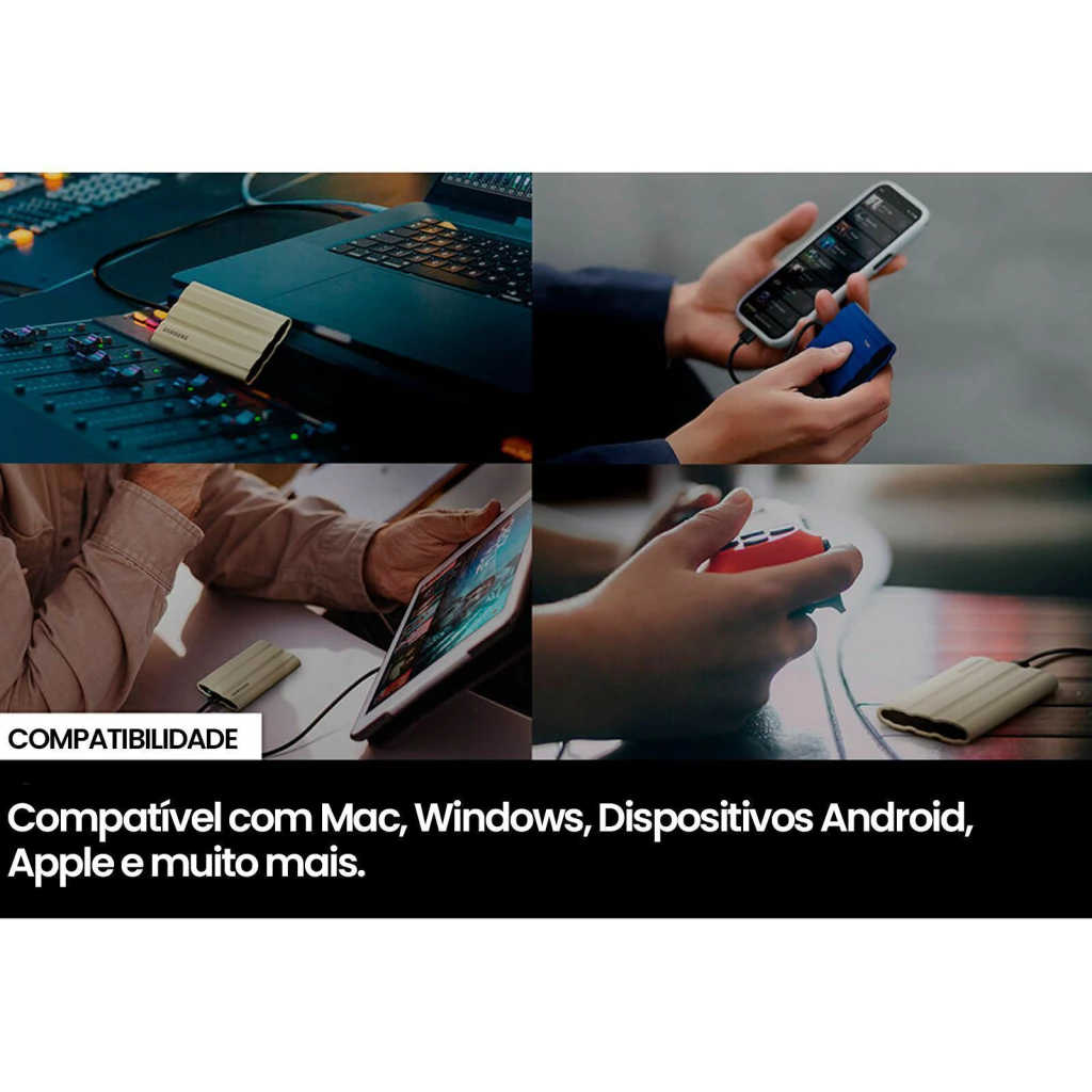 Além disso, o T7 Shield oferece aos usuários desempenho rápido e pouco tempo de inatividade, com velocidades de leitura e gravação de até 1.050 MB/s e 1.000 MB/s, respectivamente.