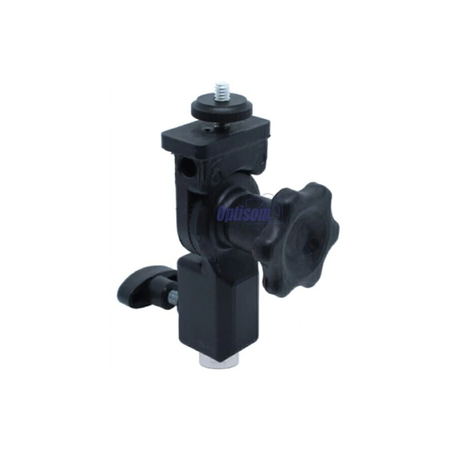 Suporte para deixar articulado iluminadores e flashes que não articulação. Para flash você deverá usar a base com rosca 1/4" incluso na maioria dos flashes. Ideal para conexão de Iluminadores, os quais não possuem articulações, em tripés de iluminação com pino padrão ou rosca 3/8" . Acompanha engate rápido pino - 3/8" padrão utilizados em tripés de iluminação. Itens Inclusos 01 Suporte articulado para iluminadores e flashes. Marca: Incoflash Peso aproximado: 207 g