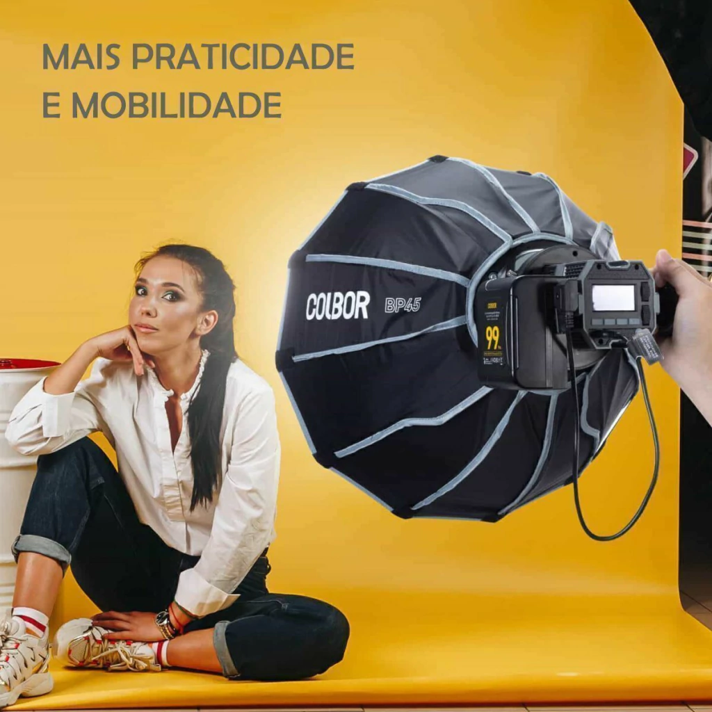 proporciona uma fixação confortável e segura para o corpo do iluminador ou