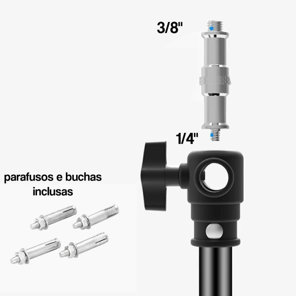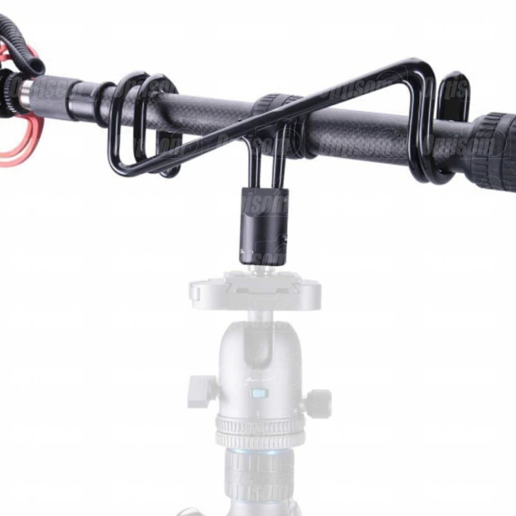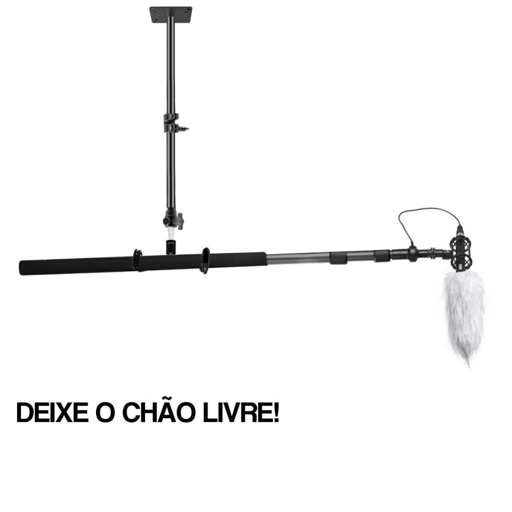 Esse suporte é indicado para fixar a vara boom de microfone e deixa-la em 90 graus sem a necessidade de um profissional segurando.