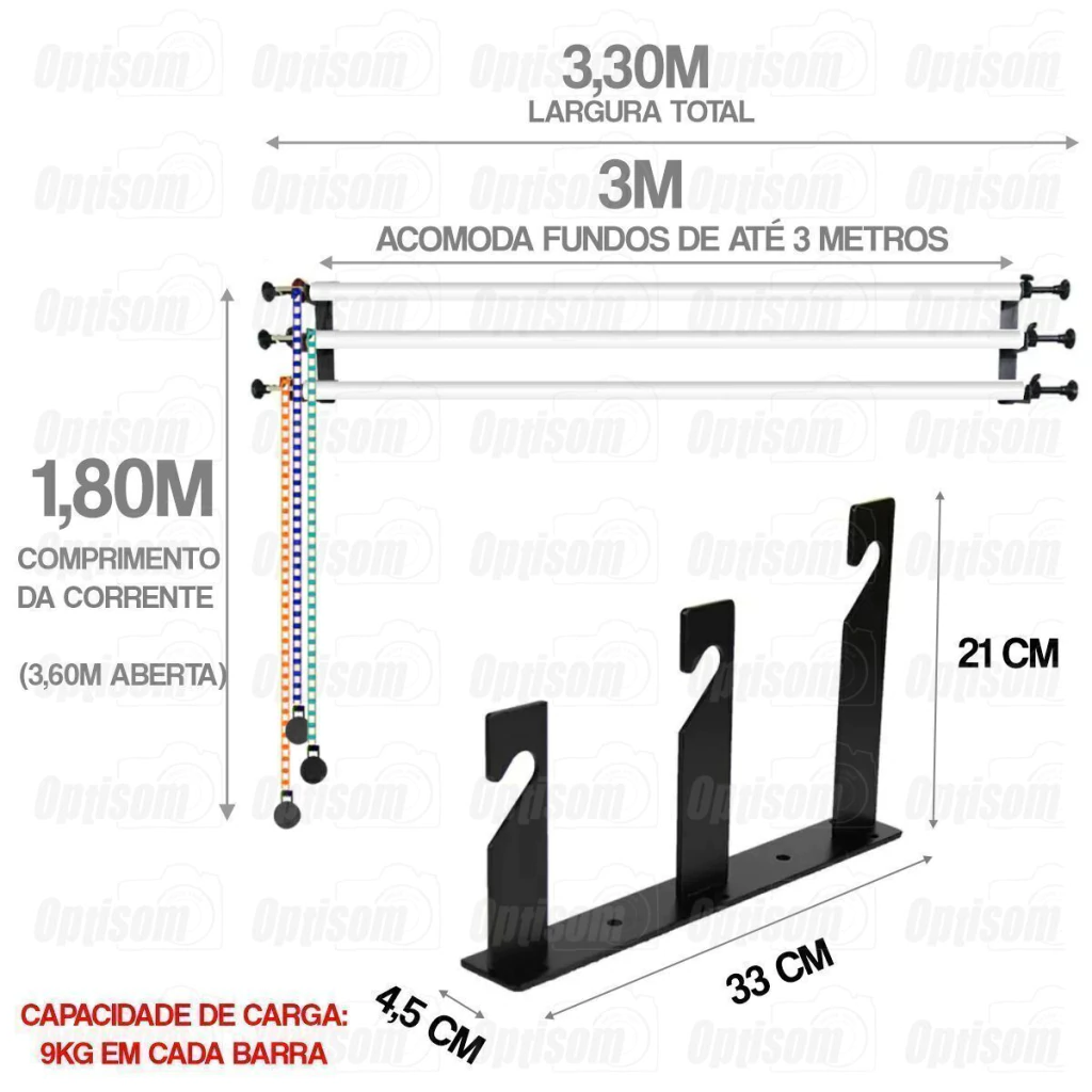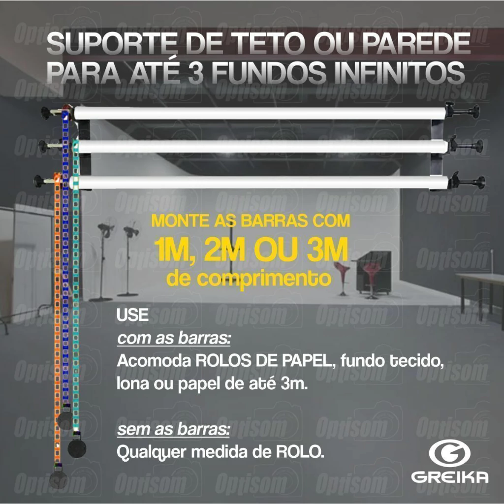 Kit Suporte ROBUSTO e firme Greika ES-B3 que fixa até 3 fundos fotográficos em