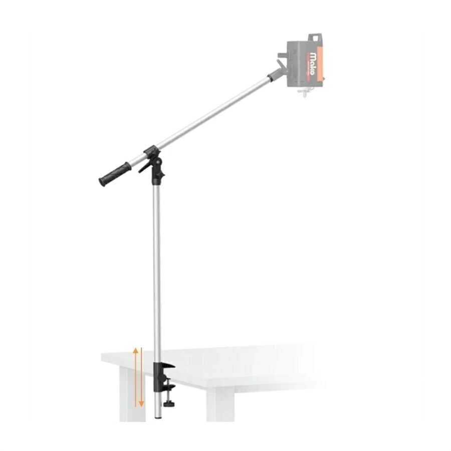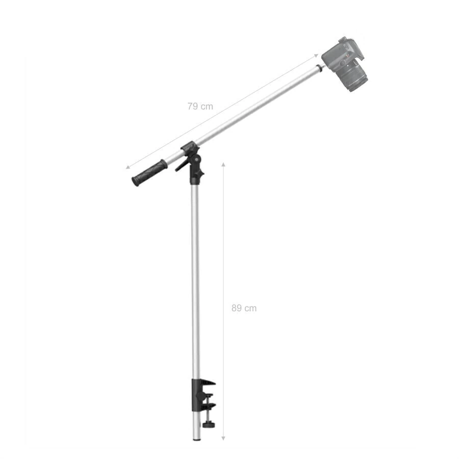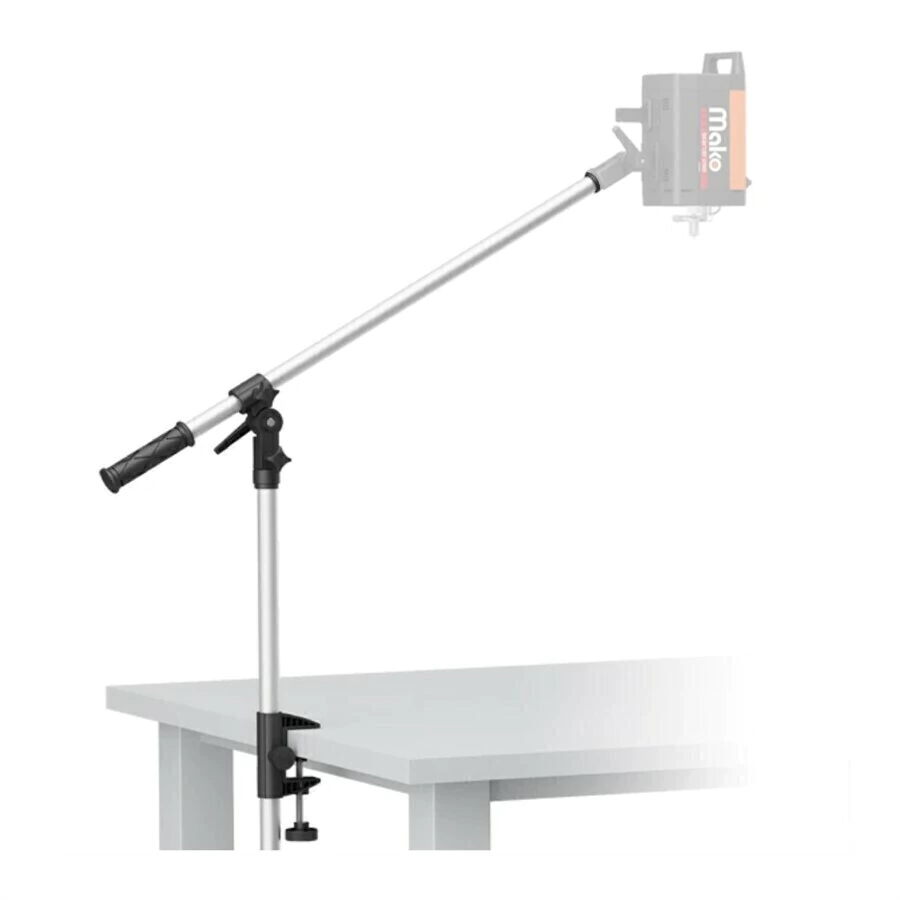 Mini girafa com haste deslizante e suporte tipo sargento para fixação em superfícies planas (mesa).