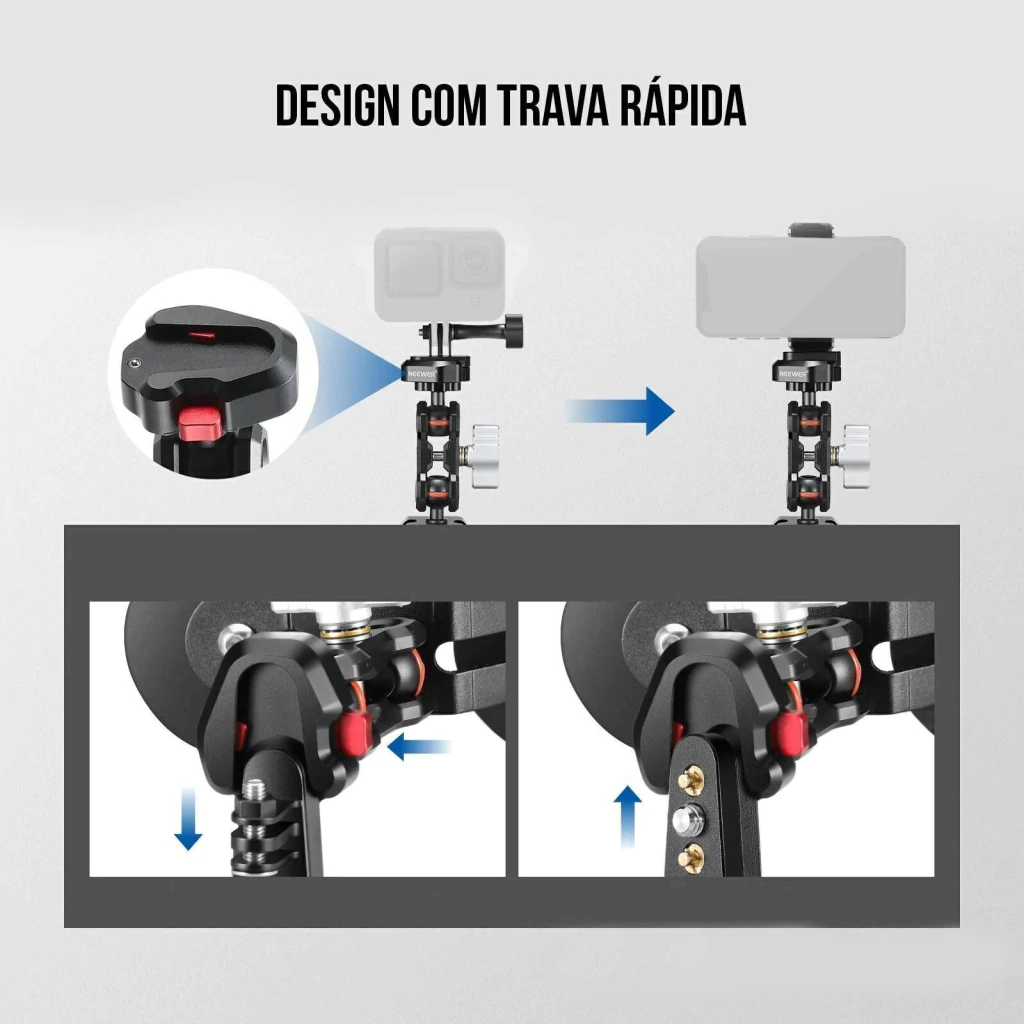 As ventosas são revestidas com borracha de silicone macia para evitar arranhões no carro. Uma das ventosas magnéticas pode ser removida com a chave sextavada incluída para alternar para um suporte de câmera de sucção magnética única para uso em áreas estreitas ou para itens mais leves.