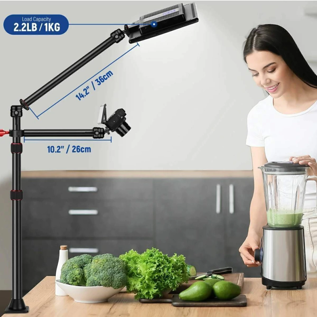 1/4". Os braços podem segurar uma câmera ou luminária de até 2 lb (0,9 kg)