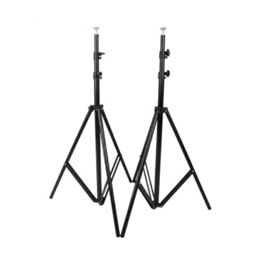 O Kit possui 2 tripés com altura mínima de 95cm e máxima de