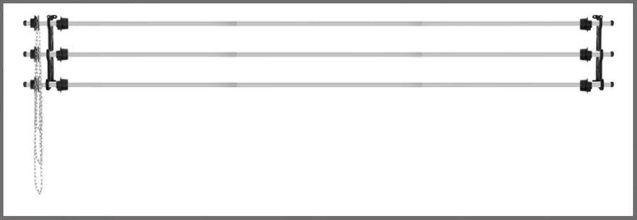 Suporte para fixação em parede ou teto dando a capacidade para prender 3 fundos de uma só vez dando mais praticidade na hora em que for escolher o fundo para determinada ocasião.