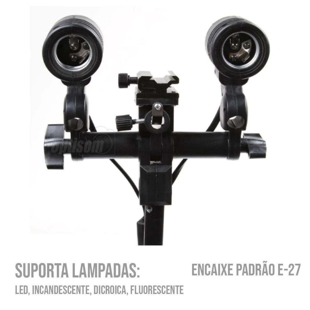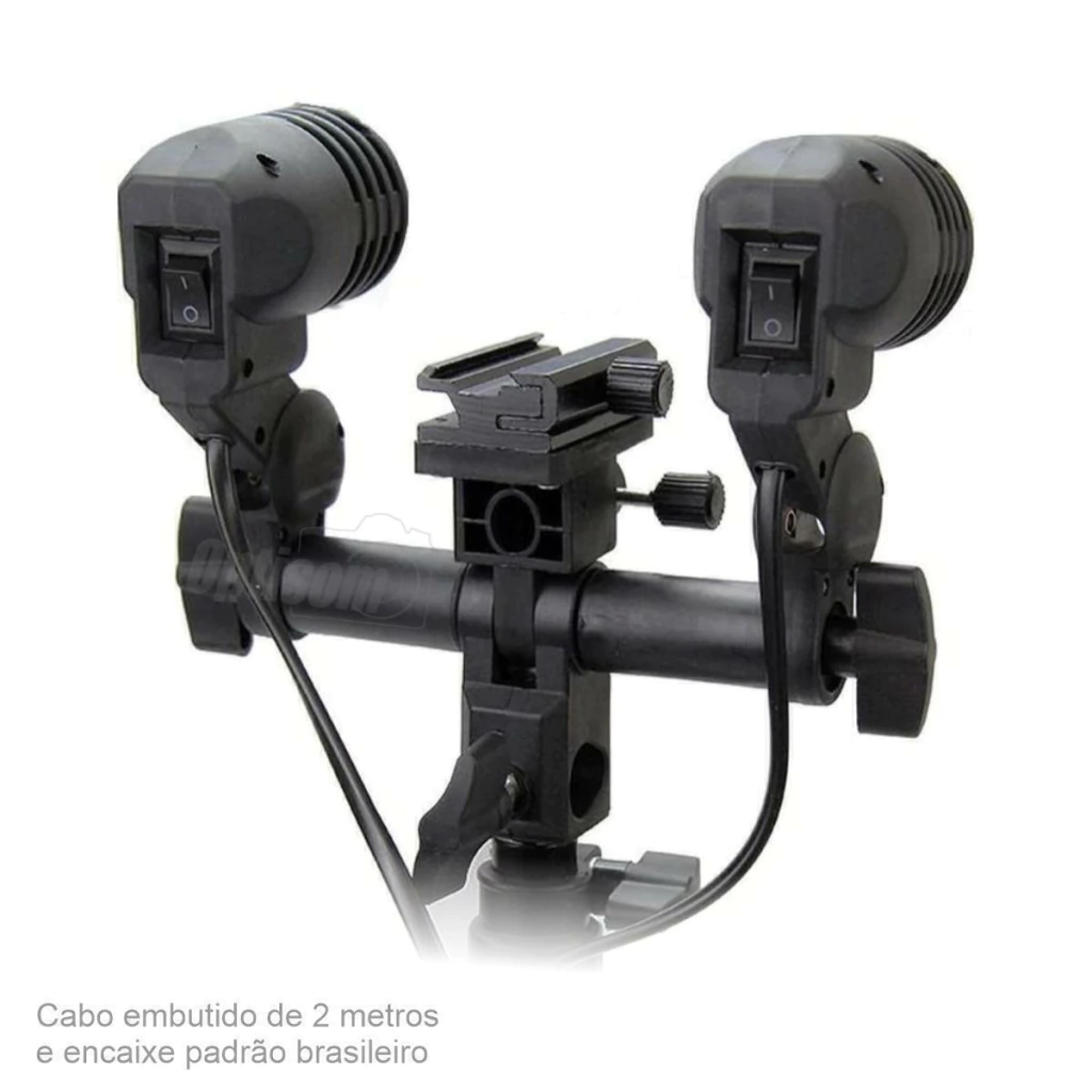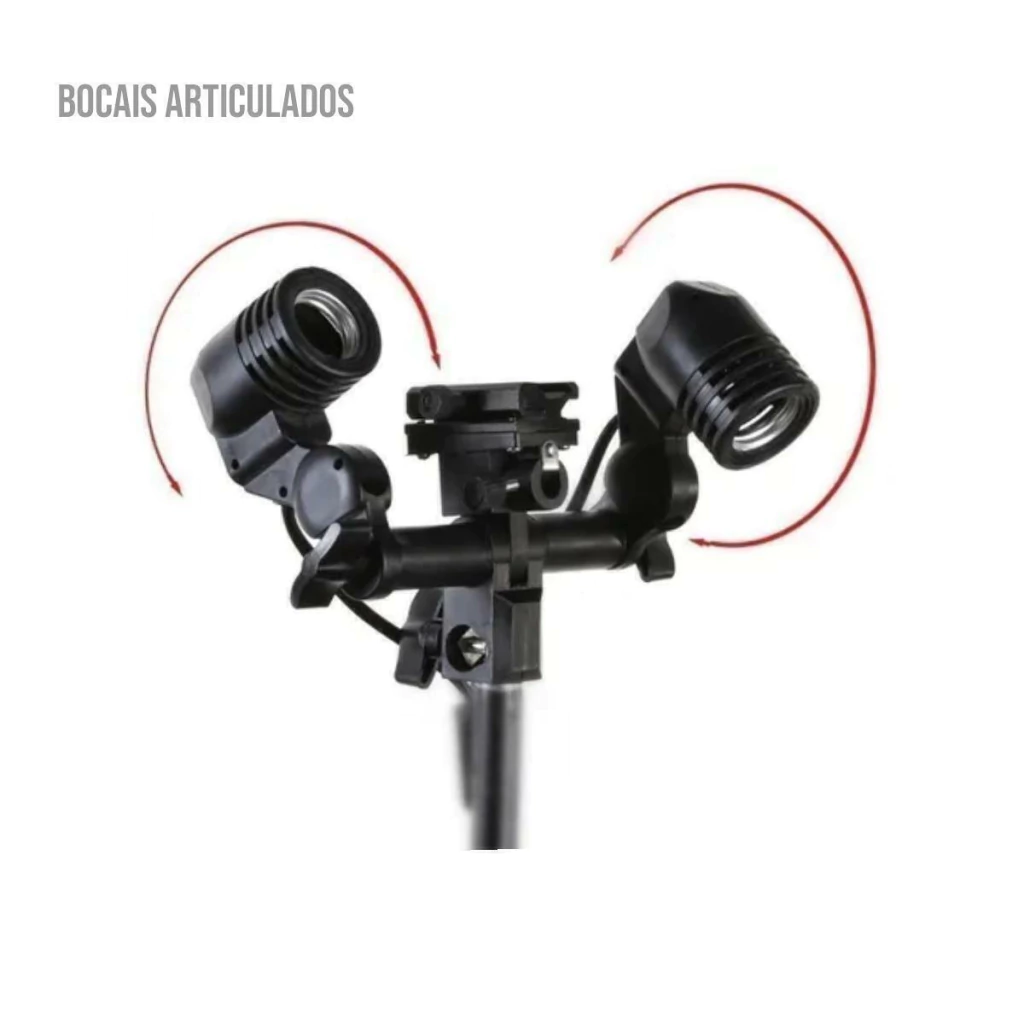 Suporte Bocal articulado duplo E-27 para lampadas e flash speedlite.