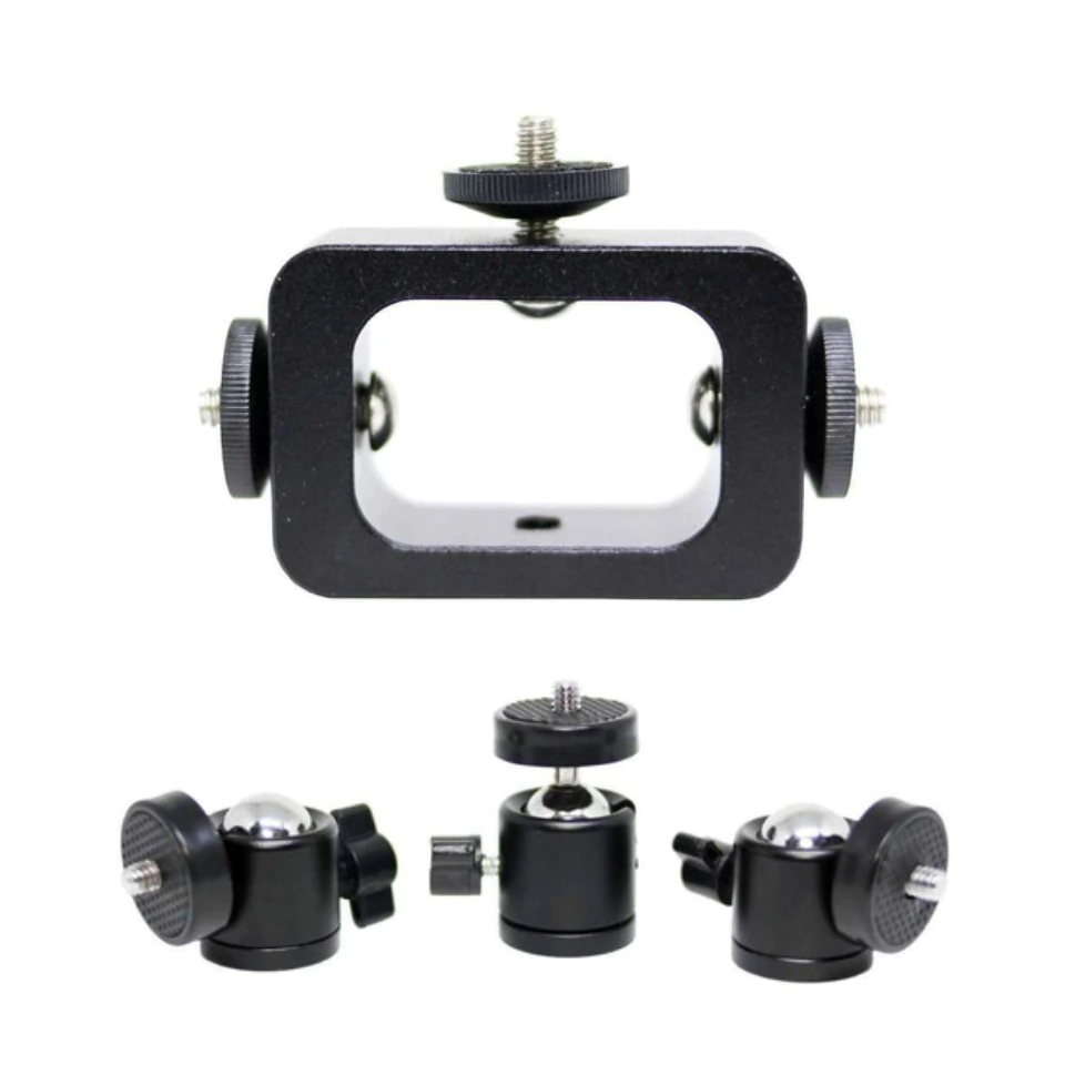 03 Mini cabeças ball head com rosca 1/4" macho e fêmea.