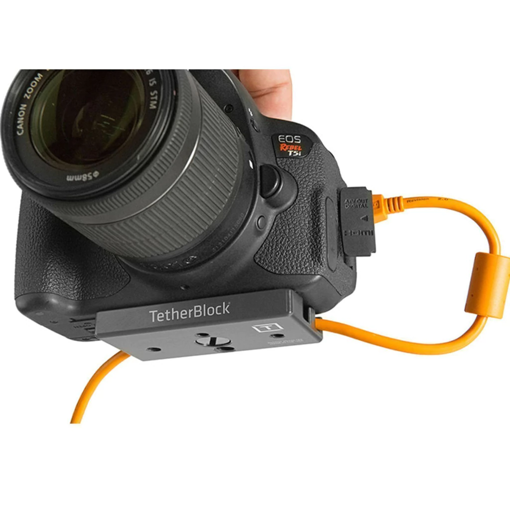 A TetherBlock MC Multi Cable Mounting Plate da Tether Tools foi projetada para evitar a remoção acidental de um cabo das portas de dados da sua câmera, evitando danos à porta e à sua câmera.