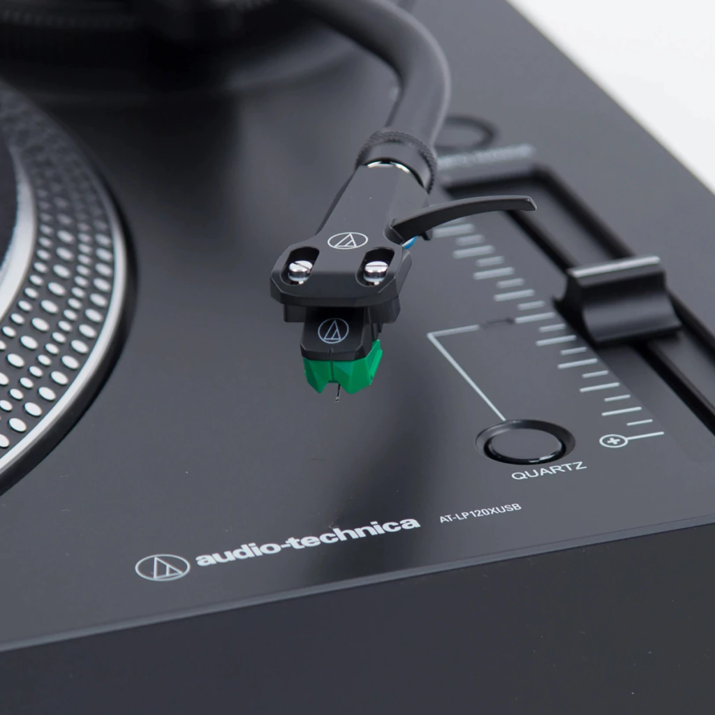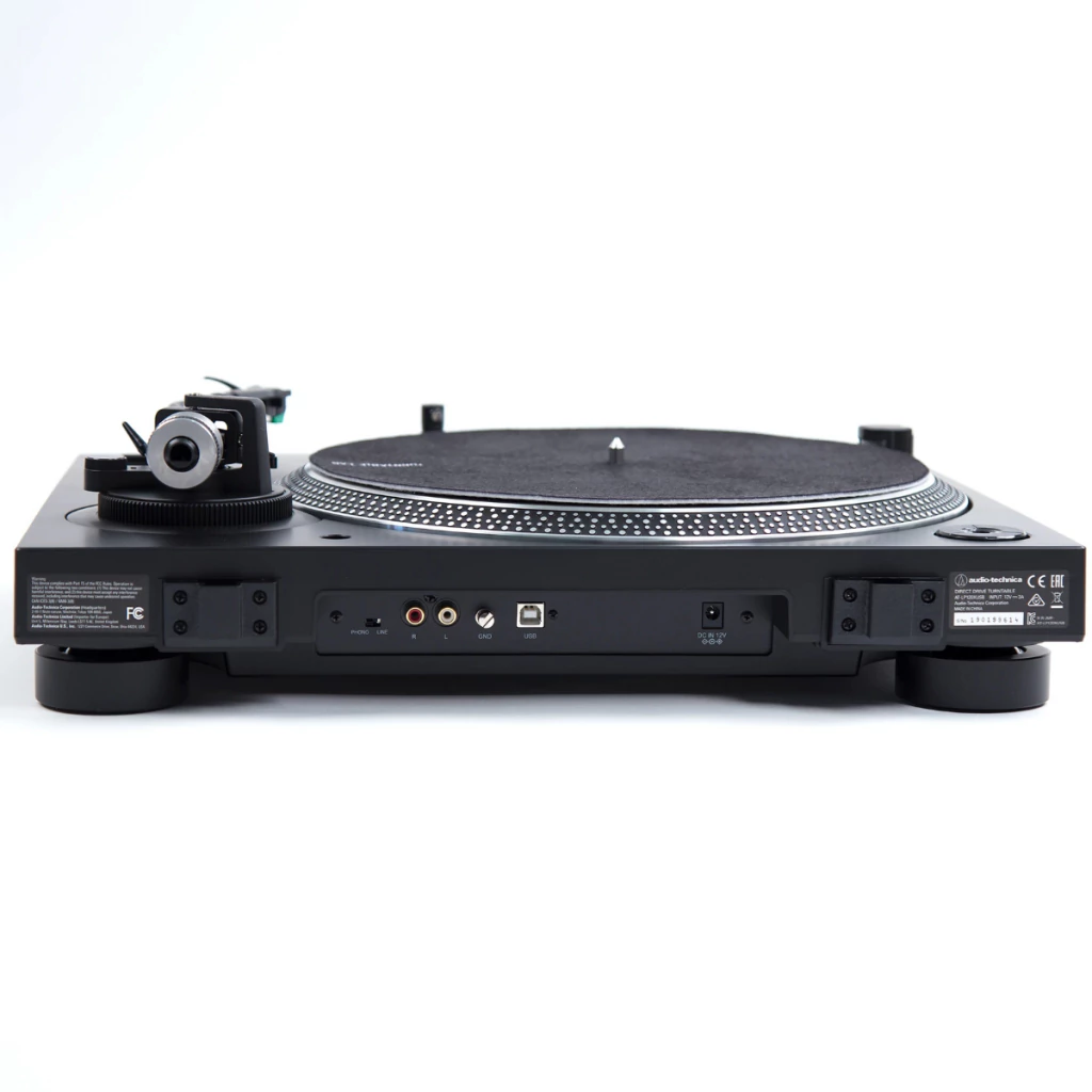 Toca discos AT-LP120X USB possui um motor servo controlado DC com acionamento direto, juntamente com um controle antiderrapagem dinâmico ajustável e um pré-amplificador fonográfico selecionável.