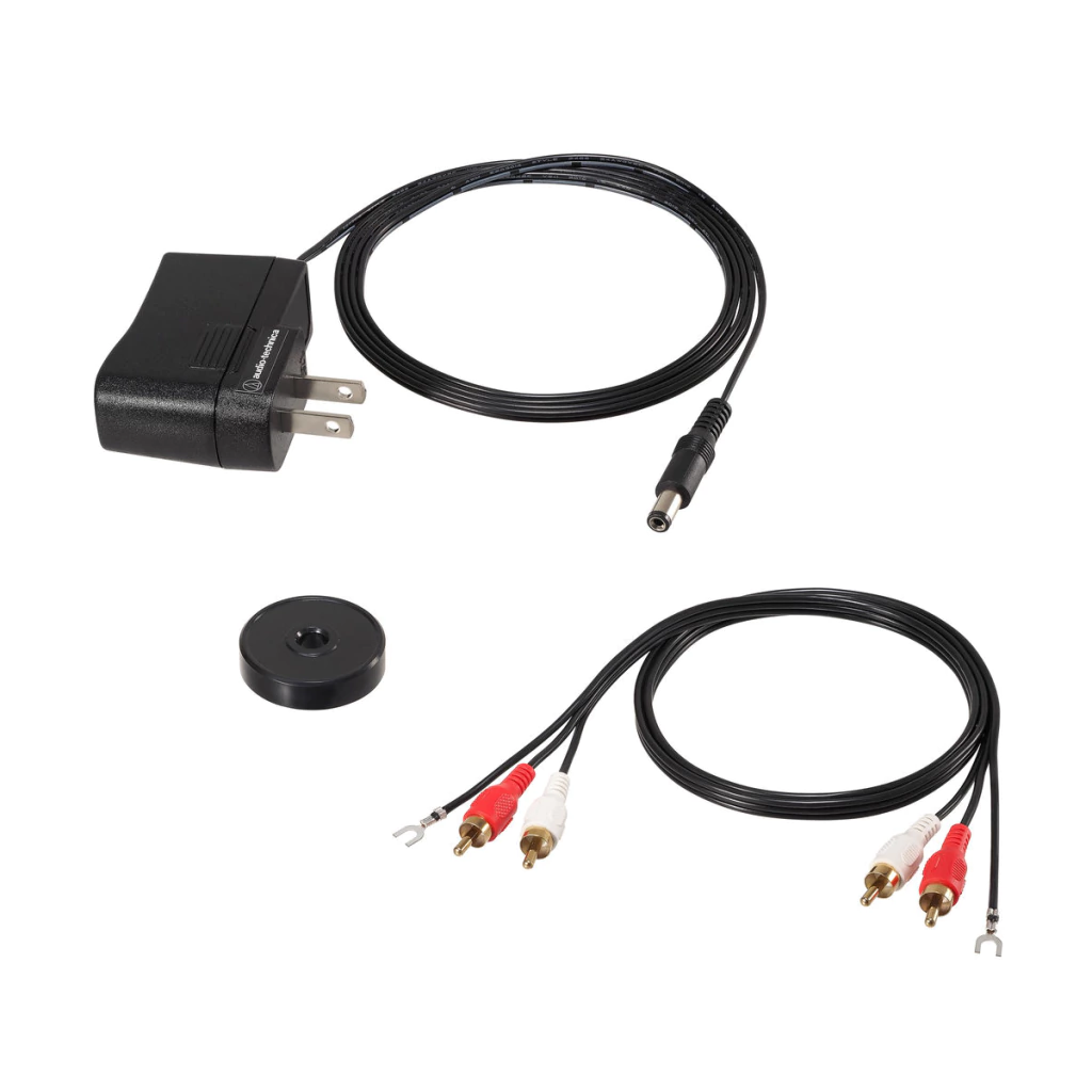 O toca-discos possui um braço de fibra de carbono reto com ajuste de pressão da agulha e um cabeçote universal com suporte de 1/2 polegada AT-HS4 com uma cápsula fonográfica preta com ímã móvel duplo AT-VM95E.