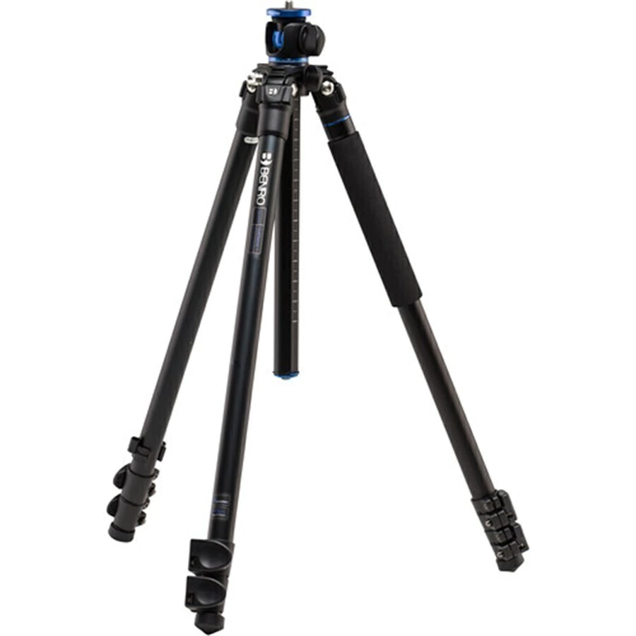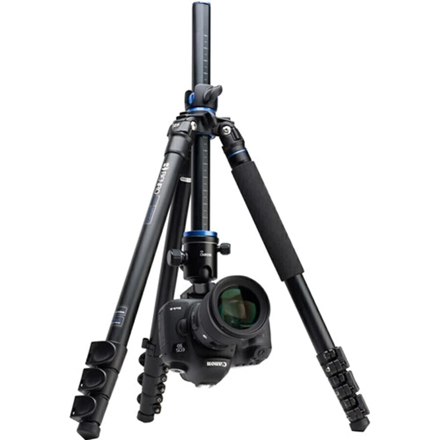 Tripé Benro GA157F feito de alumínio, uma das pernas do tripé pode ser destacado e rosqueado com a coluna central para produzir um monopé de tamanho completo.