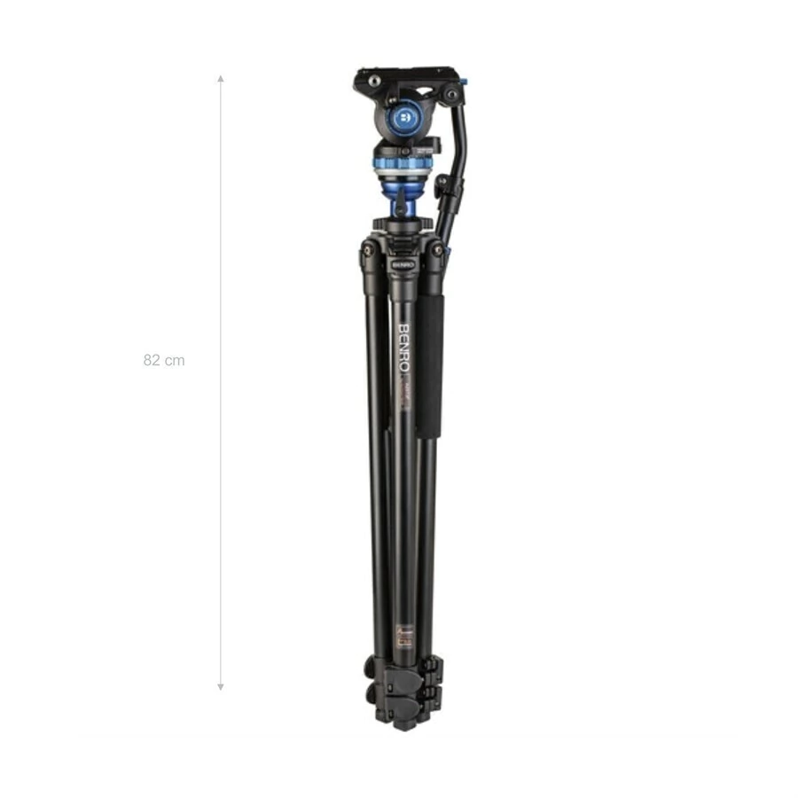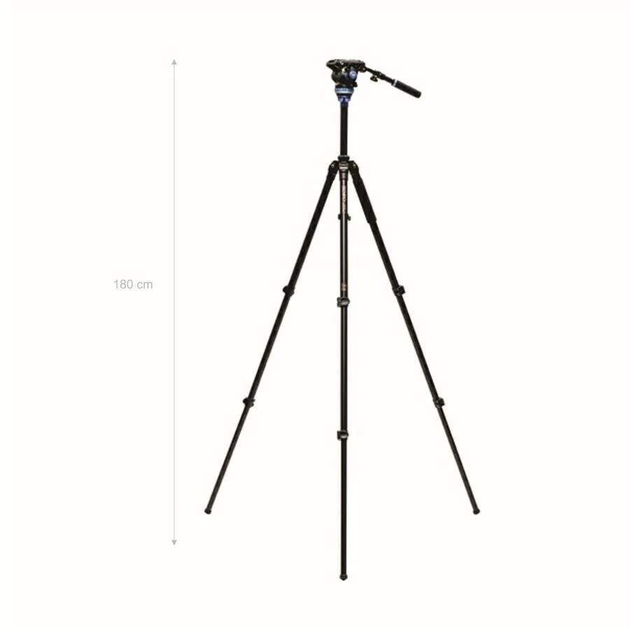 Tripé Video Benro A2573FS6 PRO, com pés em pino de aço para melhor adesão conforme o piso (gramados e terra), composto de liga de magnésio de alta resistência e mais leve , maior estabilidade e anti vibração.