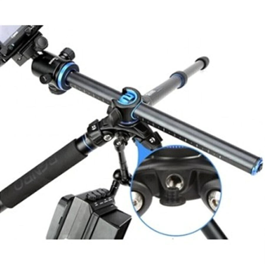 Coluna central com rotação suave em 360o , perfeita para imagens panorâmicas, ângulos das pernas ajustáveis individualmente para montagem em superfícies irregulares.Rosca 3/8 " para conectar braço articulado para fixar monitores ou outros acessórios.