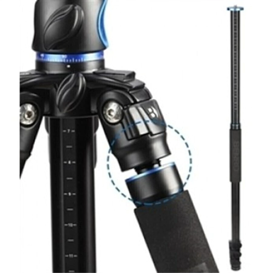 Gancho removível na coluna central: aumento da estabilidade com um peso extra em locais com muito vento, pisos irregulares e quando usar lentes pesadas.