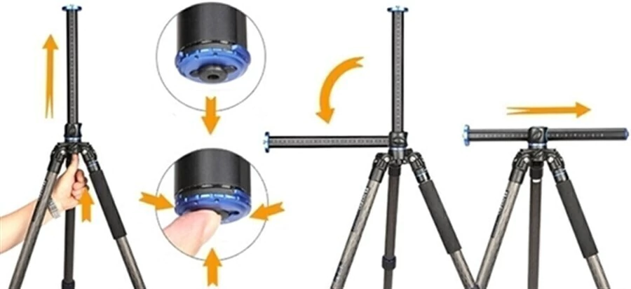Os principais componentes têm liga de magnésio que é 30% mais leve com ótima estabilidade, os tubos de alumínio anodizados são de alta resistência à corrosão e ao impacto.A coluna central pode ser virada facilmente na horizontal.