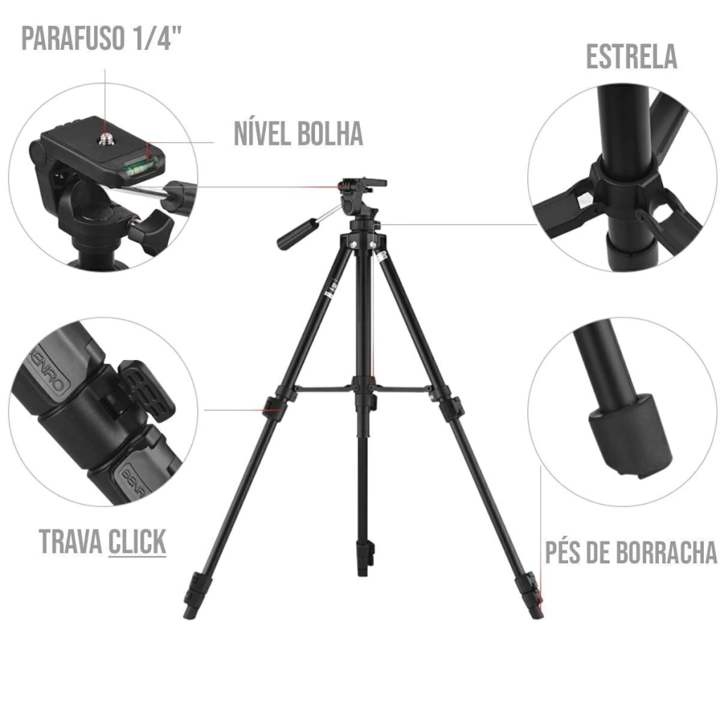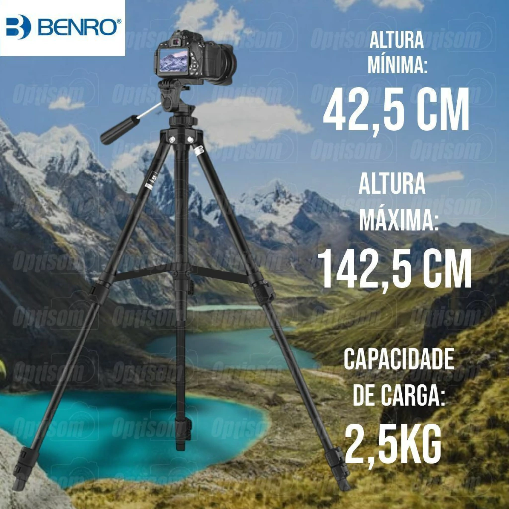 O tripé de smartphone e câmera usa a mais recente tecnologia de suporte Benro.