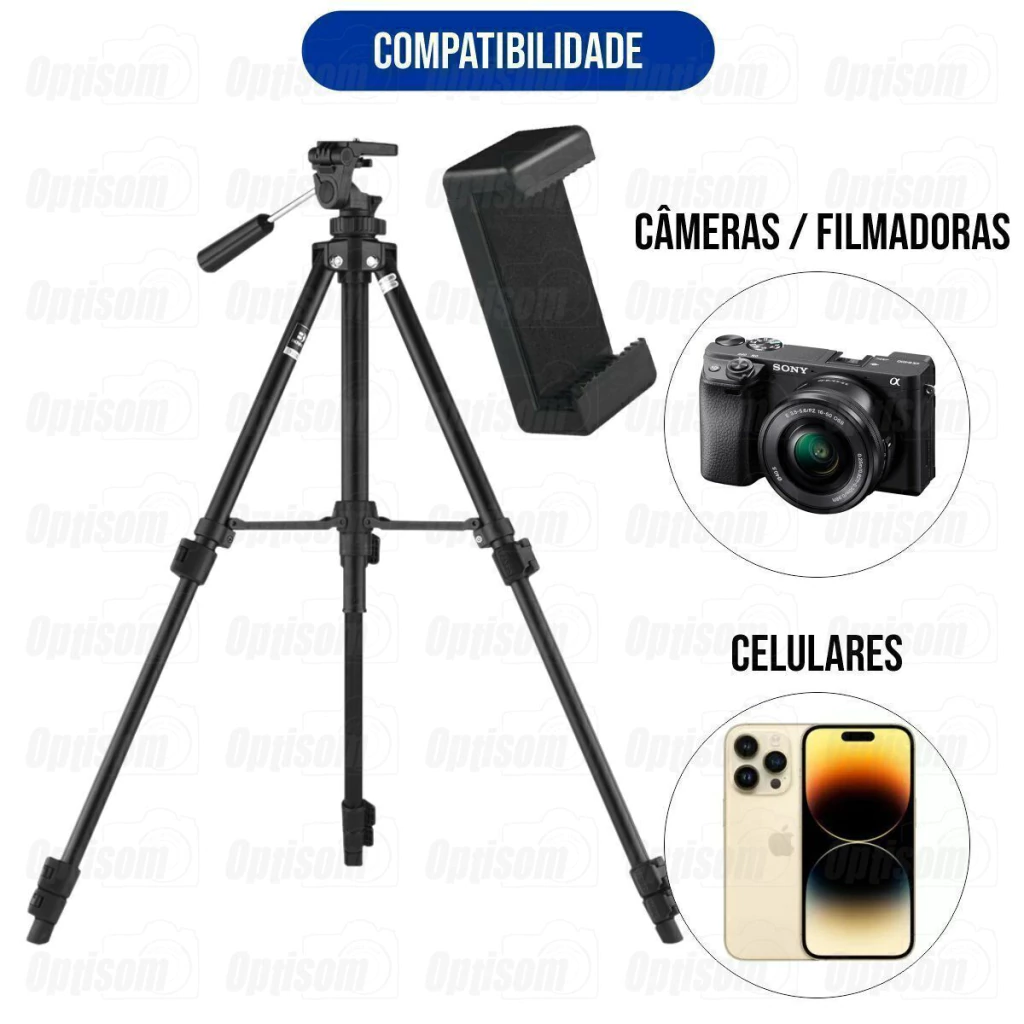 Ele está equipado com uma cabeça de 3 vias que suporta cargas de até 2,5 kg e é