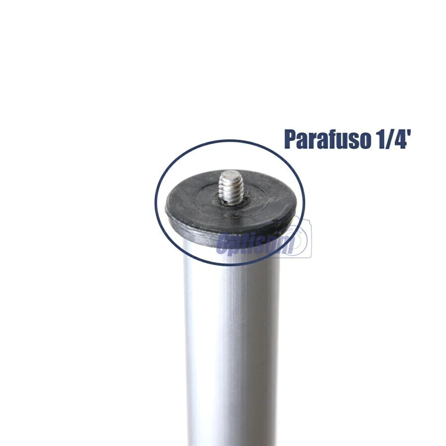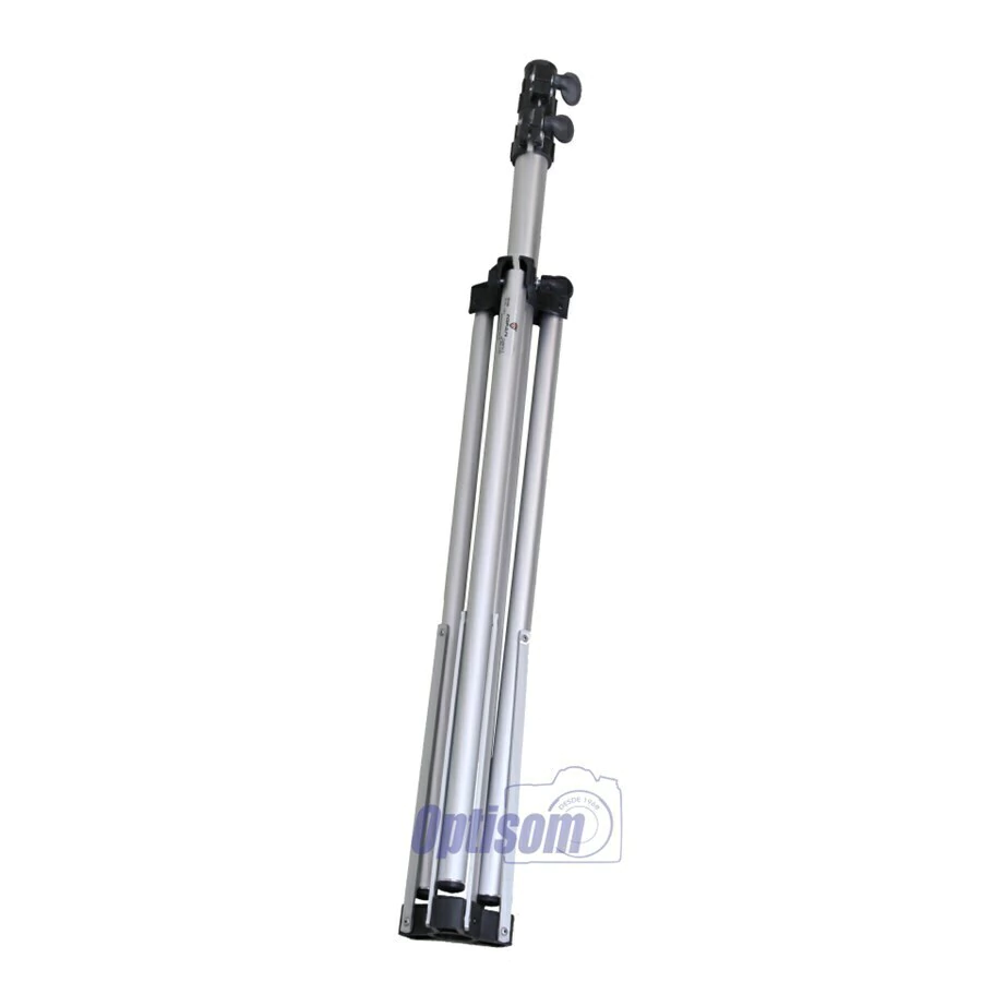 Tripé para iluminação feito em alumínio com travas em plástico.