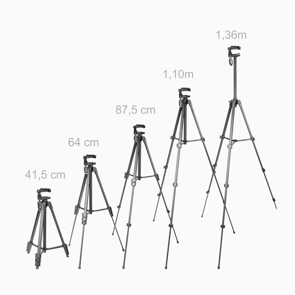 Compatível com todas as câmeras que tenham uma rosca fêmea 1/4" (padrão de todas câmeras), mas reparar na capacidade de carga suportada pelo produto e compatível com todos smartphones do mercado (suporte vendido a parte).