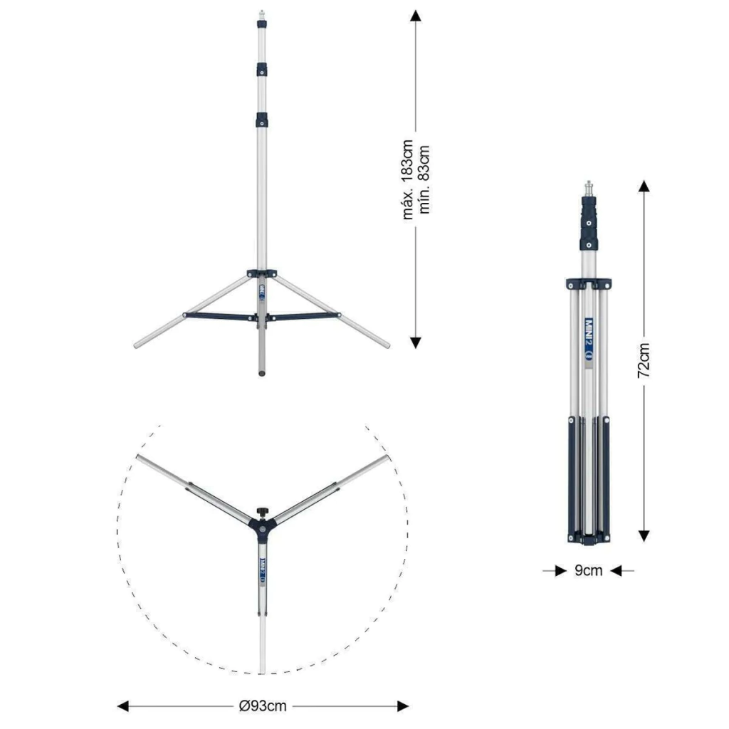 Tripé mako para iluminação com altura máxima de 1,83 m de 2 seções.