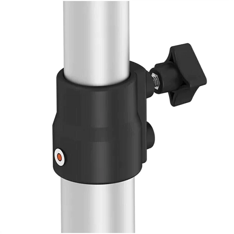 Possui pino Ø 5/8" com rosca macho 1/4" para encaixe de flashes, luminárias e acessórios.