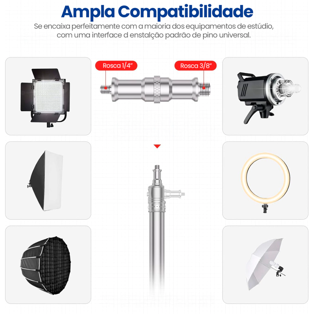 Encaixe: Pino universal 5/8” com rosca 1/4" e 3/8”